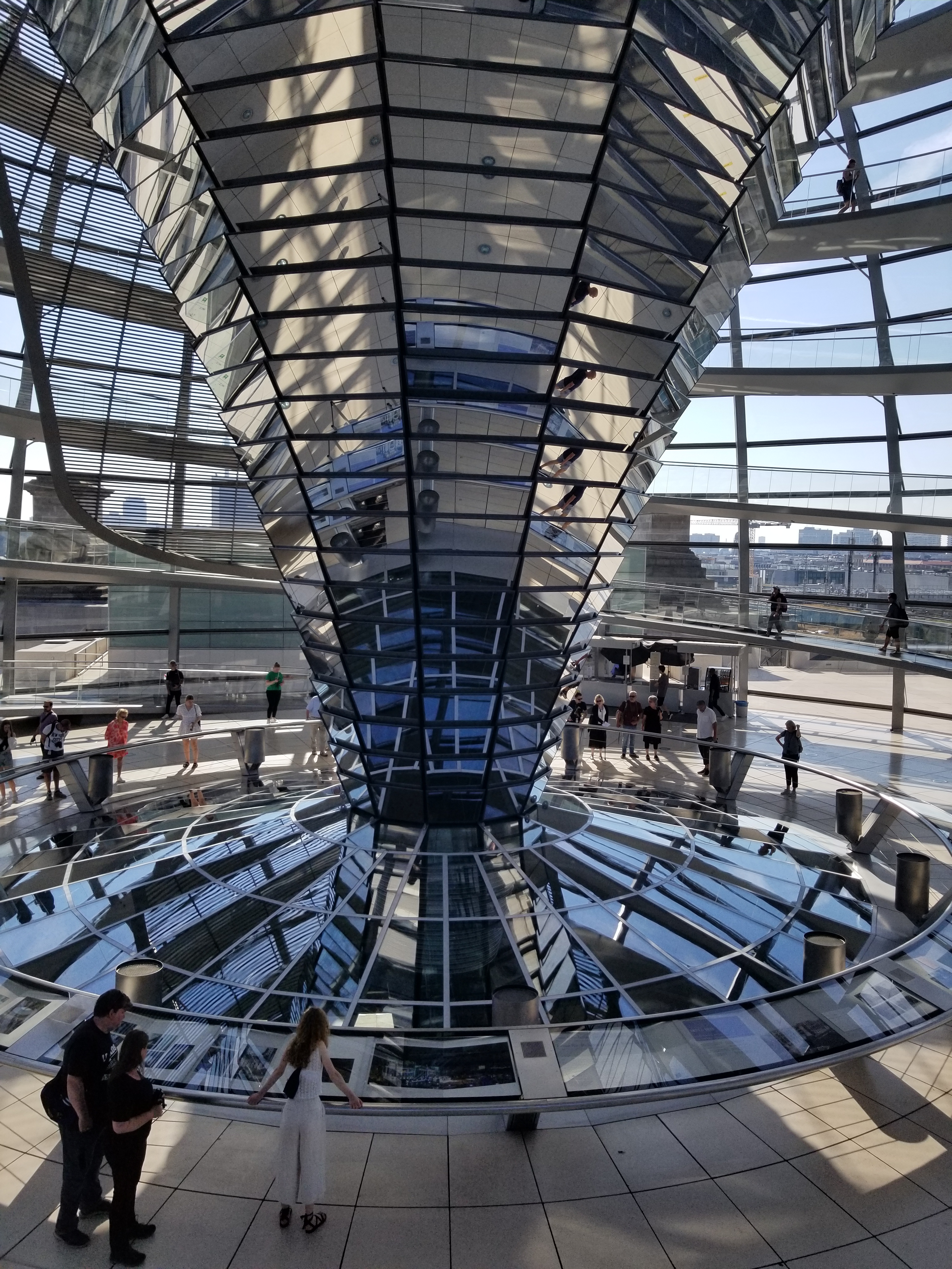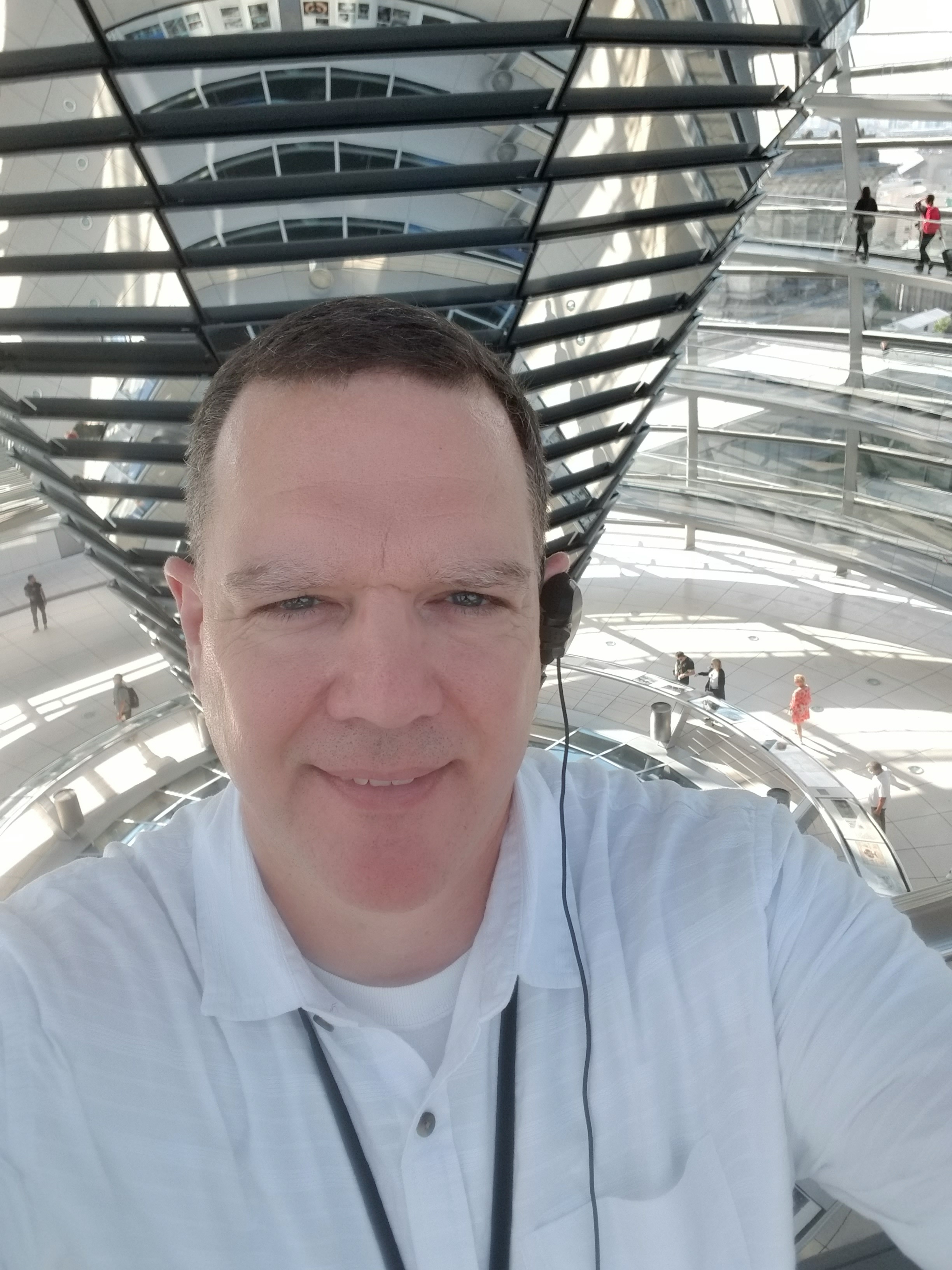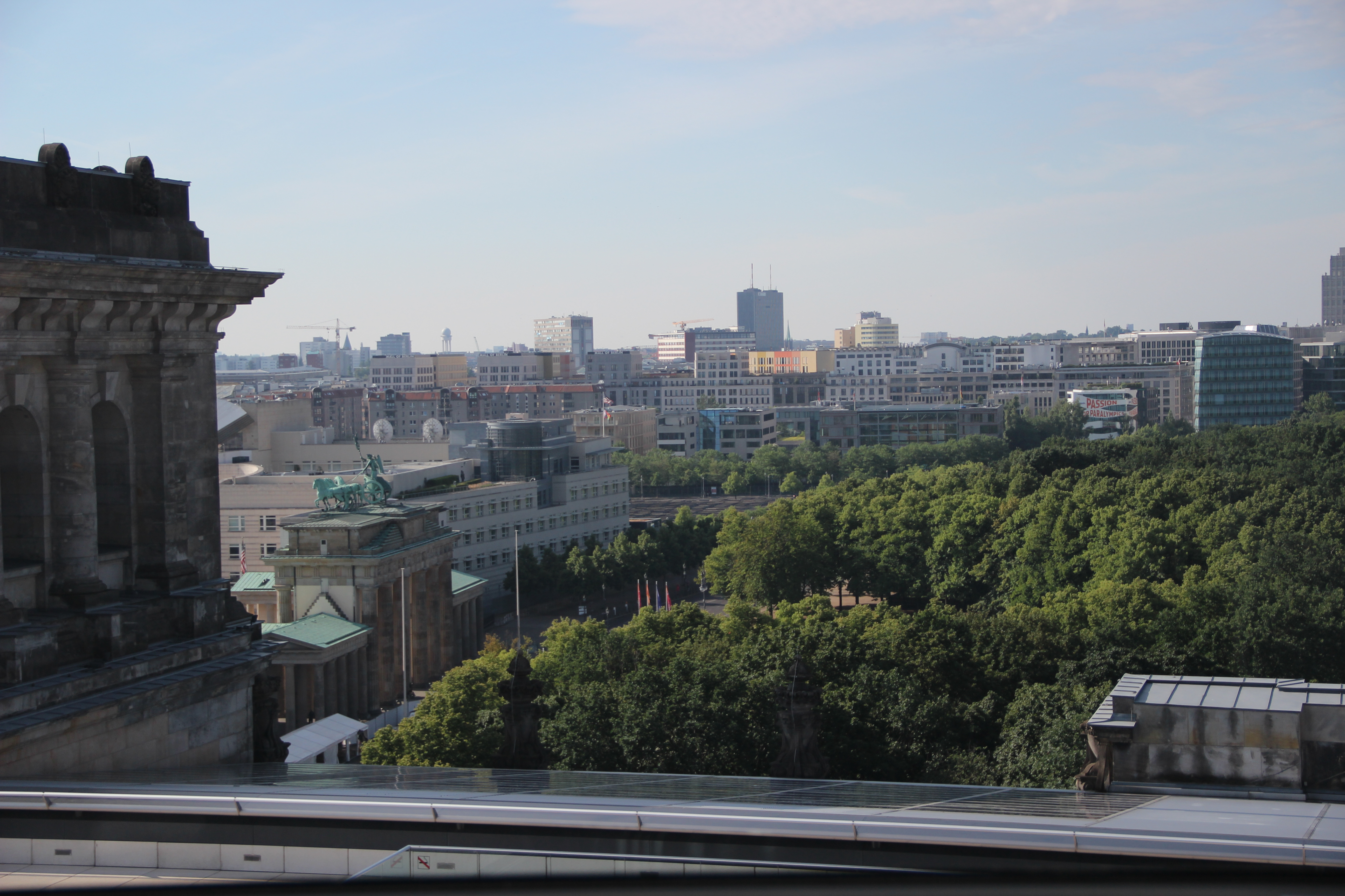 My first full day in Berlin began the next morning with a tour of the Reichstag dome. Though much of the building was destroyed during World War II, the German government restored it in recent decades and it once again houses the Bundestag, or German Congress. The glass dome was added to the top to provide light and air circulation to the primary chamber and provide tourists a neat way to experience the building and get a look at the city. A spiral walkway takes visitors to the top of the dome for a spectacular view! From there, I caught my first glimpses of the Victory Column, the Holocaust Memorial, and the Brandenburg Gate, which is where I headed next. I was able to get some 360 images of the streetscape of the Brandenburg Gate and even gaze on it from the exact spot where President Reagan gave his famous “Tear down this wall” speech. As a side note, the architecture and design of Berlin is breathtaking. Old World history seems to ooze out of every building and structure! The Prussian iconography and emphasis on military strength are everywhere and give the city an imposing feel.