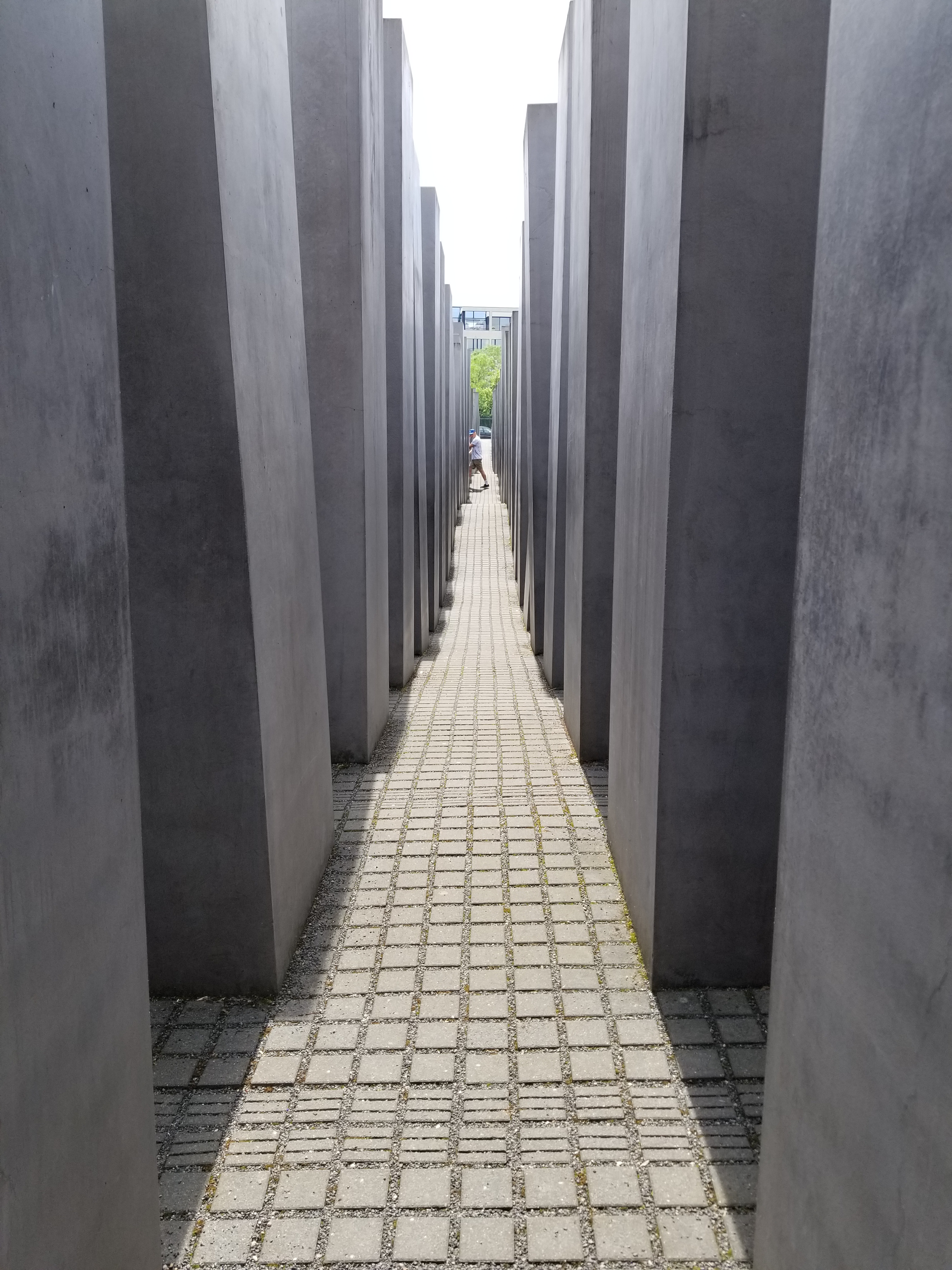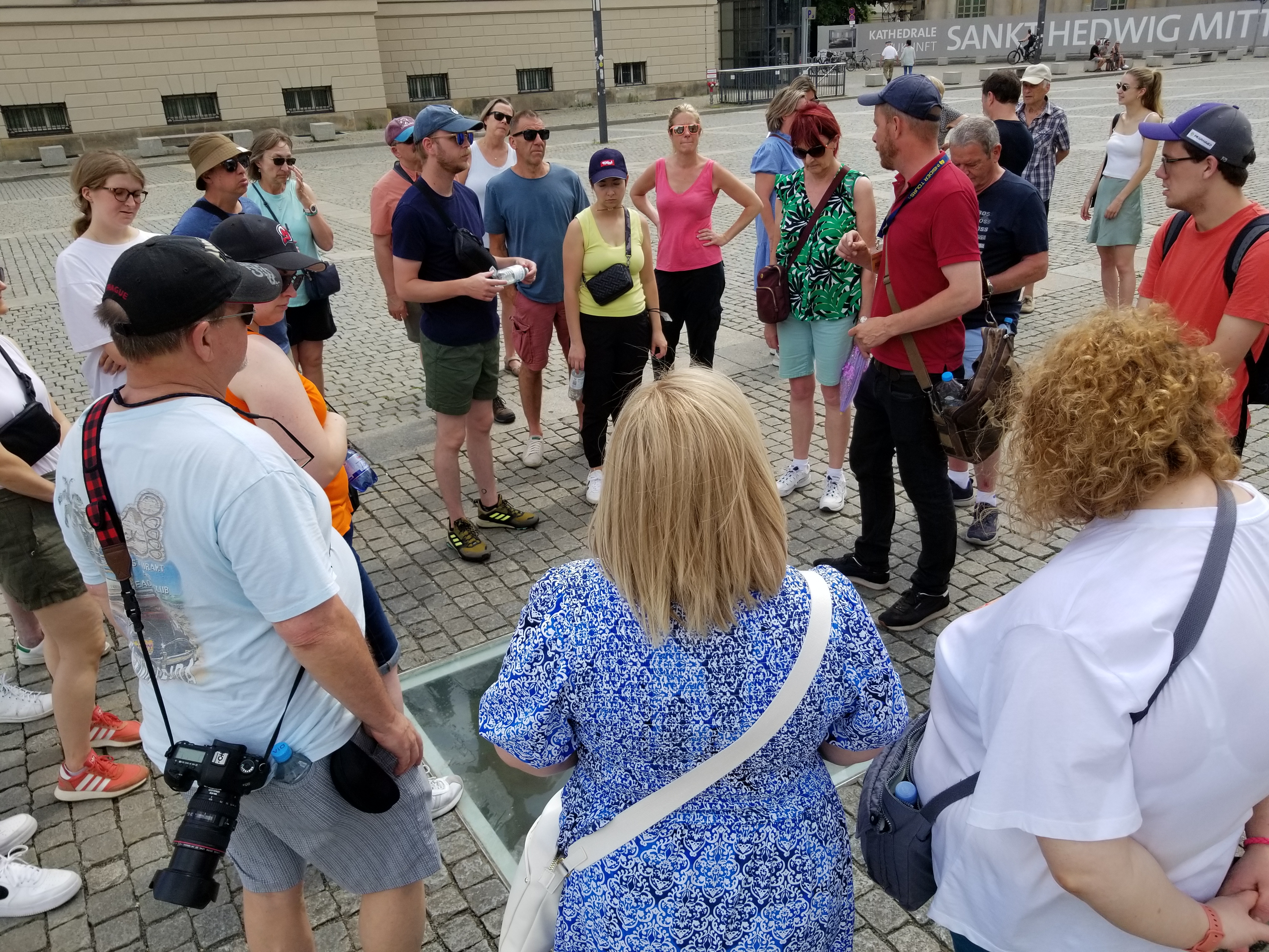I next took a 3-hour World War II walking tour which explored key locations around the city that told the story of the Jewish population of Berlin, the social changes and economic effects of World War I, and how these led to the rise of the National Socialists. The journey through the Jewish neighborhood was especially enlightening as we passed the beautiful New Synagogue and learned the history of how it was spared destruction through the actions of a courageous few during the days before and during WWII when most Jewish districts were decimated. The rest of the story unfolded as we took in the courtyard of Humboldt University and observed the site of the famous large book-burning that took place there. A subtle, but powerful “empty library” visual feature is embedded in the ground in that location. We continued to see the story develop at the Reichstag before moving to the Holocaust Memorial, a sobering artistic feature that occupies a prominent space in the heart of Berlin in memory of the millions of lives lost. It is one of the most interesting and unique memorials I’ve ever seen and the meaning that one can find in its thousands of concrete blocks is only limited by your imagination. The last stop of the tour was a gravel parking lot across the street from the memorial that covers the site of Hitler’s Fuhrer Bunker where he huddled in safety during the final days of the war and where he and his wife committed suicide. The contrast of the two sites was remarkable and illustrative of how Germany teaches and remembers the story today.