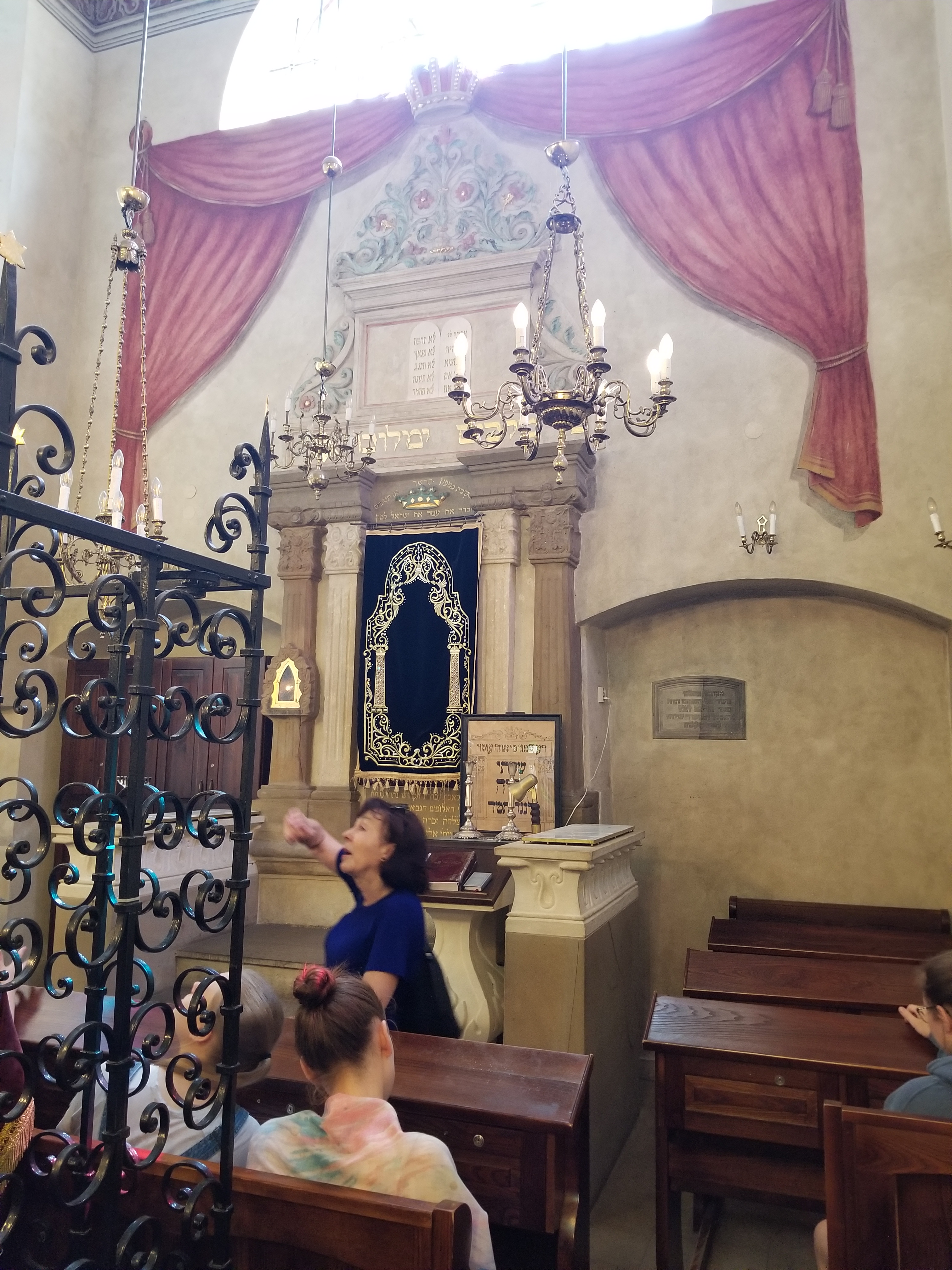 My final day in Poland had a morning tour of the Jewish Quarter and Oskar Schindler’s Factory Museum scheduled and an afternoon free to see any remaining sites that I could squeeze in. In order to sleep in a bit (until nearly 8:00), I took an Uber to the Old Synagogue in the Jewish Quarter. I met my tour guide and learned that I was the only one in the group today. For the next 3.5 hours I would have my own personal tour guide! We began by walking the streets of the Jewish neighborhood known as Kazimierz where the once large and vibrant Jewish community in Krakow was centered. The guide pointed out symbols within the architecture and explained that there used to be 100 synagogues in Krakow and tens of thousands of Jews. Today, the Jews number in the hundreds in the city and there are only 2 active synagogues. The first building we went into was the Remah Synagogue named after Rabbi Moses, a prominent author and scholar within the Jewish faith during the 16th Century. This was my first time in a synagogue and my guide did a great job of interpreting the scene for me. She explained about the Torah Ark, known as the Aron Hakodesh at the front of the sanctuary that holds the Torah scrolls concealed behind a curtain and how it is always on the east wall. The scrolls can only be read within the designated area in the center of the room that resembles an iron cage with an ornate podium within it. There are so many more interesting elements to Jewish tradition that I learned, including that men and women enter the synagogue through different doors and are physically divided or separated from each other during the ceremonies. After the visit to the inside of the synagogue, we went into the cemetery outside to highlight some of the unique traditions related to Jewish burial. This particular cemetery had to be reconstructed after Nazi occupation because nearly all of the headstones were knocked down, moved, or used to pave streets. The cemetery itself was used as a trash dump during WWII.