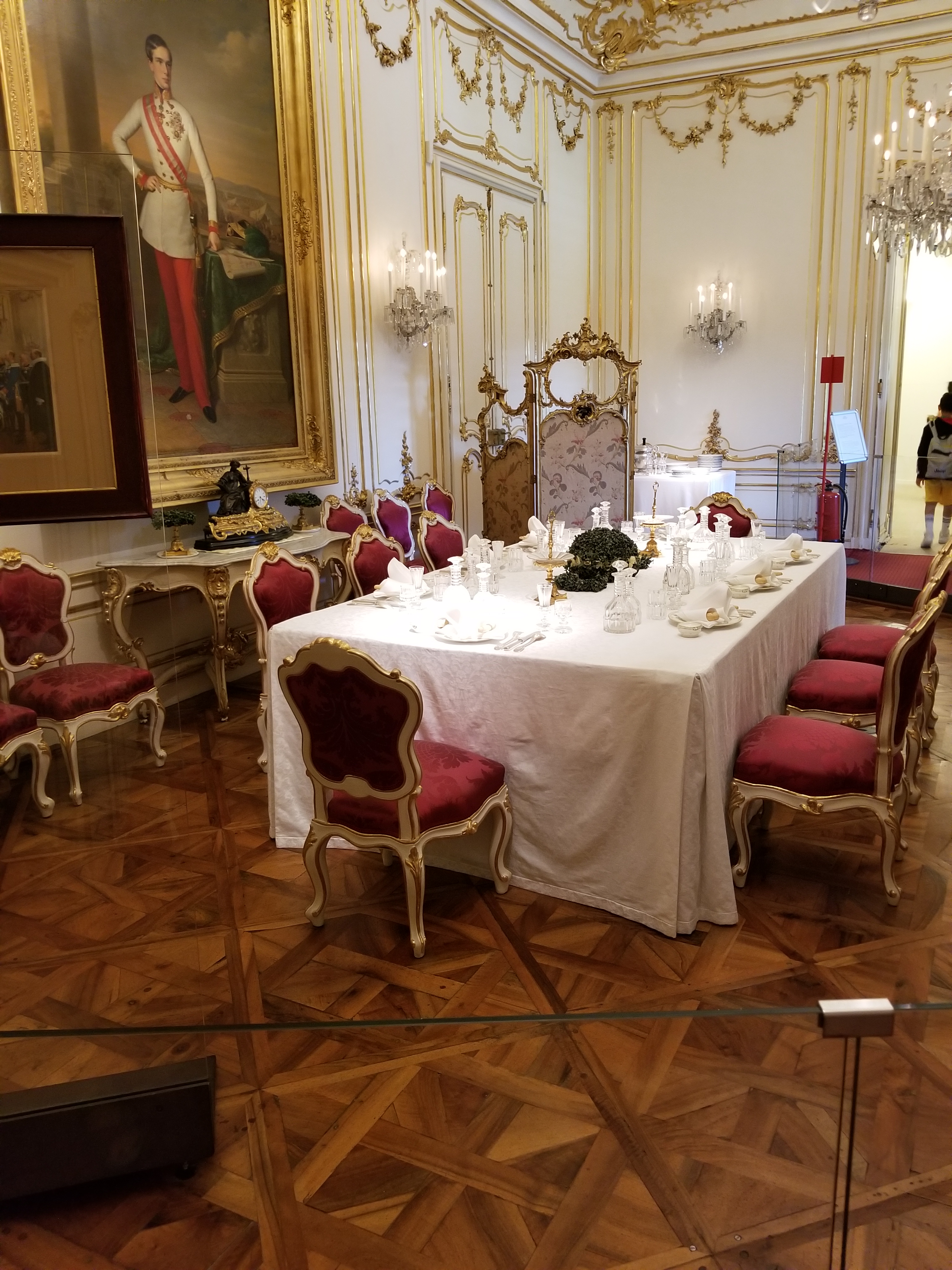 The tour of the Schonbrunn Palace, or the summer palace of the Hapsburgs, was especially exclusive since it took place after hours when other visitors are not present. We each received a link to an audio tour that we listened to on our own smartphones and we got to spend an hour going through the royal apartments. It is so interesting, and humbling, to explore places like this and it demonstrates just how different life is for royalty than for the subjects they rule over. The most famous couple of the palace’s history was Emperor Franz Joseph I and his wife Elizabeth (Sisi) and much of the tour focused on their daily life. It’s hard to know whether to be jealous of, or feel sorry for, the people who lived here. They had power, influence, wealth, and glamour but the rigid, uncompromising, protective life that they led couldn’t have felt very free.