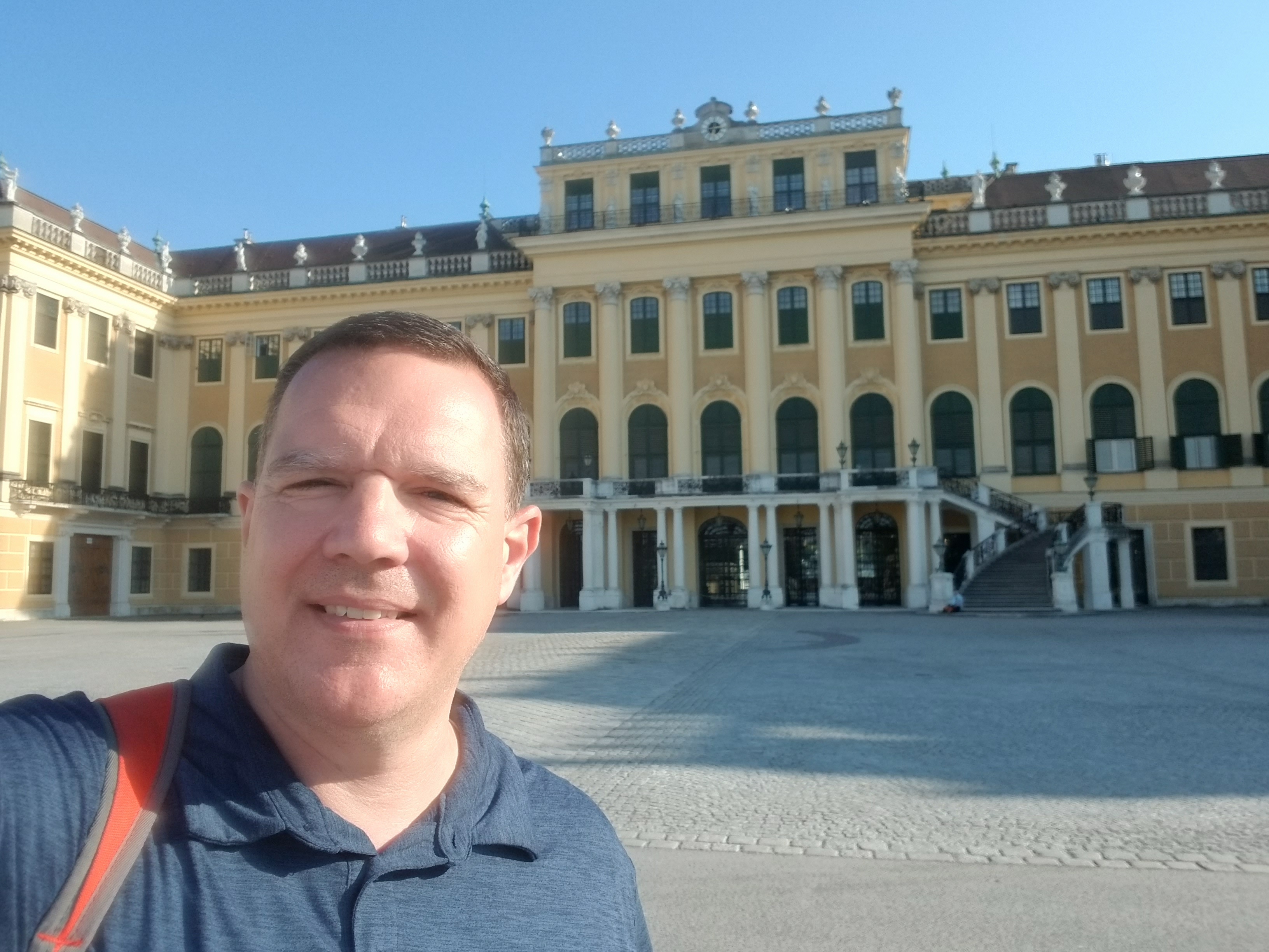 I didn’t have time to squeeze in the Freud Museum, so I went back to Stephensplatz to get some 360’s of St. Stephen’s and take a closer look at the building. This was also a good area to do some souvenir shopping and browsing for postcards and such. What a cosmopolitan city this is! Just like everywhere we’ve been so far, the huge percentage of English speakers astounds me. Easily half of the people walking around are speaking English and even more than that could. What an advantage we have as travelers from the United States! After grabbing a bite to eat, I headed back to the hotel to change for the evening’s tour and classical concert at the Schonbrunn Palace. Figured I better look more like I belonged there!
