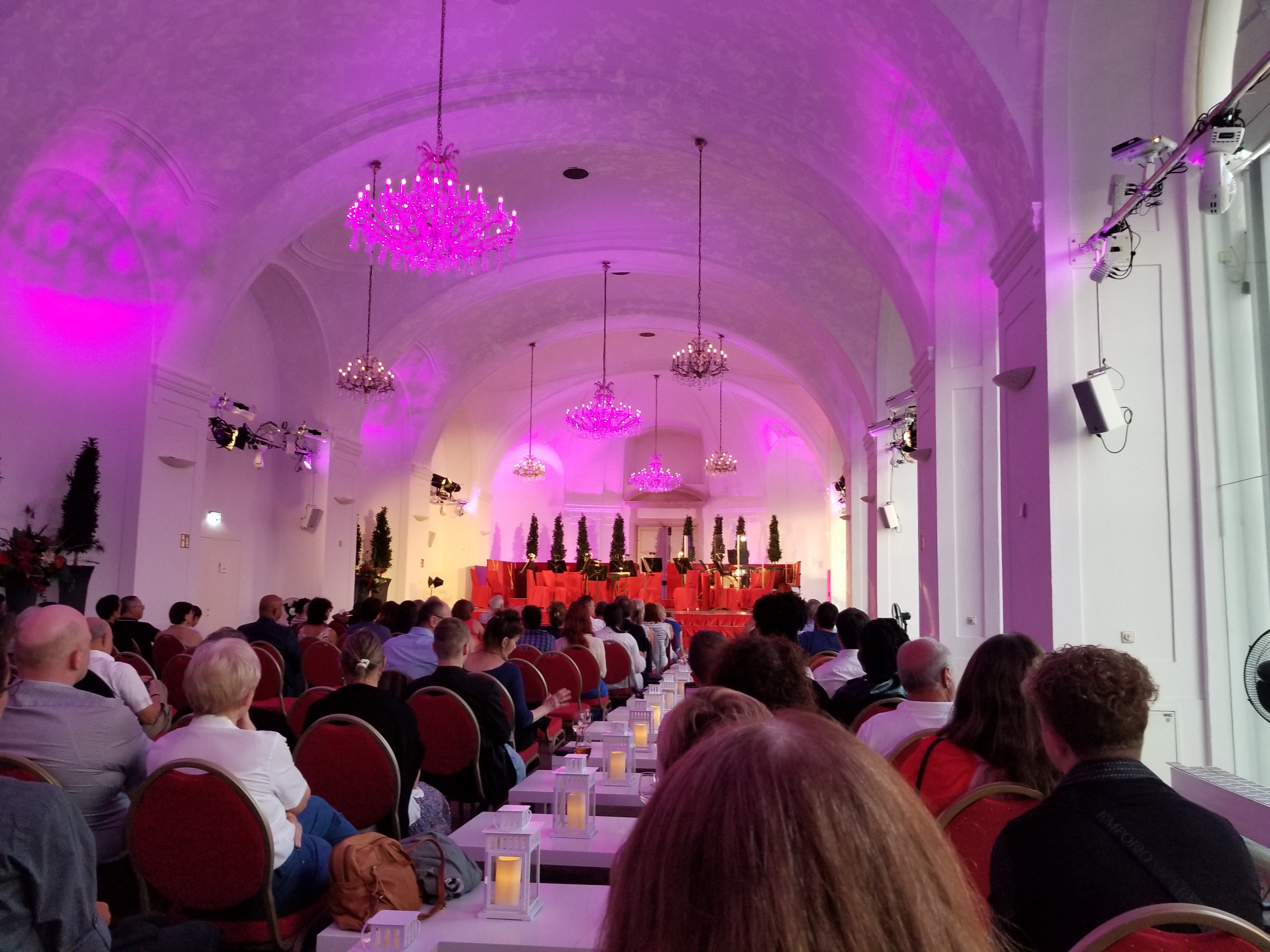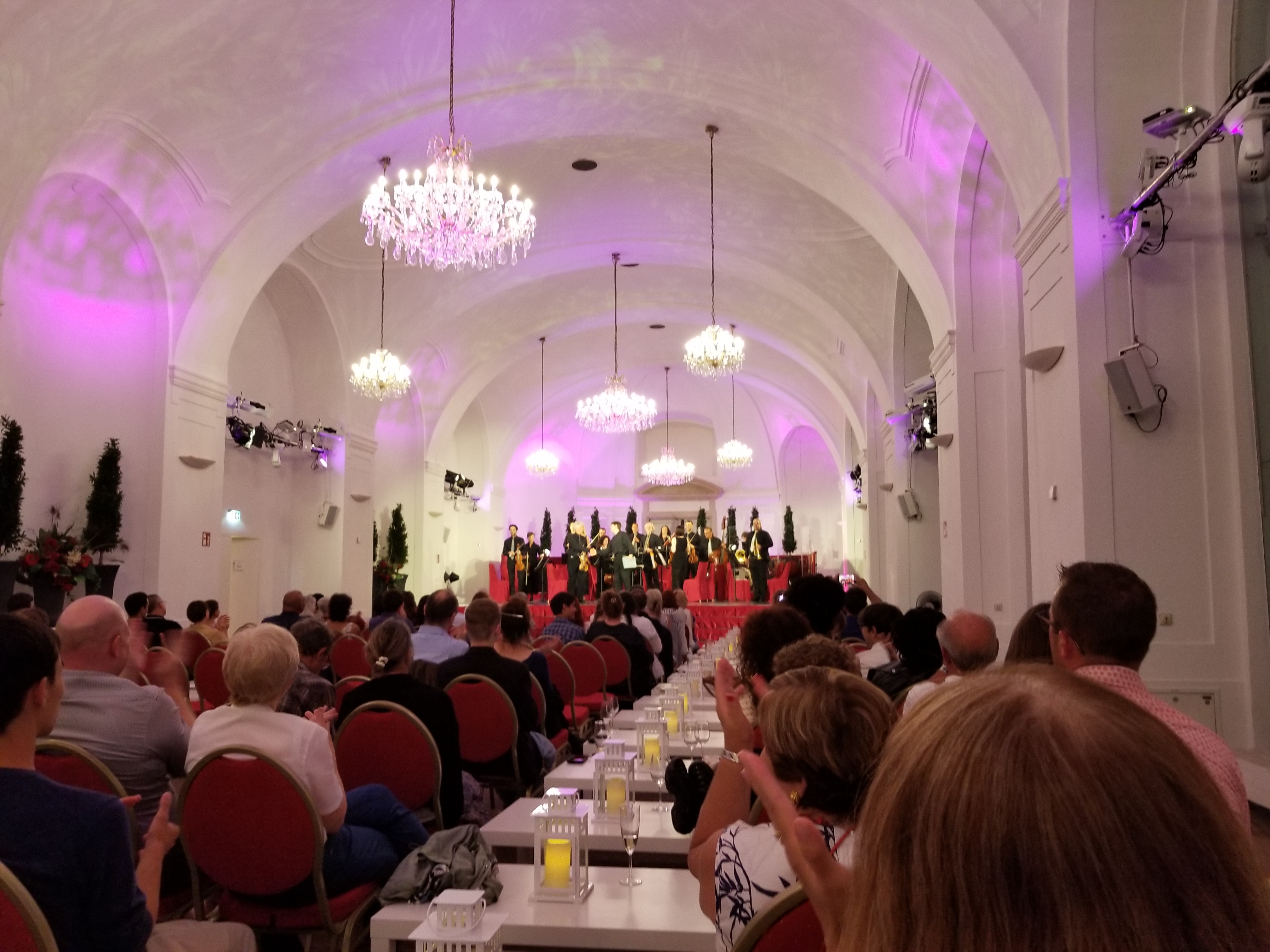 After the palace tour, there was time to explore the royal gardens behind the palace and enjoy the exotic plants, delicate landscaping, and well-tended shrubbery. At the far end of the gardens, high up on a hill, was a monument to the family that also provided an extraordinary view of the palace and grounds as well as the city of Vienna beyond. What a city! One of the structures in view was the palace Orangerie. Back in the day, this would have been used as winter storage for the fruit trees and exotic plants that couldn’t endure the harsh winter conditions but today it is used as a concert venue. The city of Vienna loves to celebrate its native sons Mozart, Strauss, Beethoven, and others (for good reason!) and tonight’s classical concert would highlight many of their beloved pieces. A full orchestra emerged and took the stage in this very classy environment, and proceeded to treat us to a couple of hours of amazing music. Several pieces also included a pair of opera singers, which was a first for me for sure! It felt so appropriate to be listening to classical masterpieces while sitting in a wing of the Schonbrunn Palace in Vienna, Austria. Life is so good!