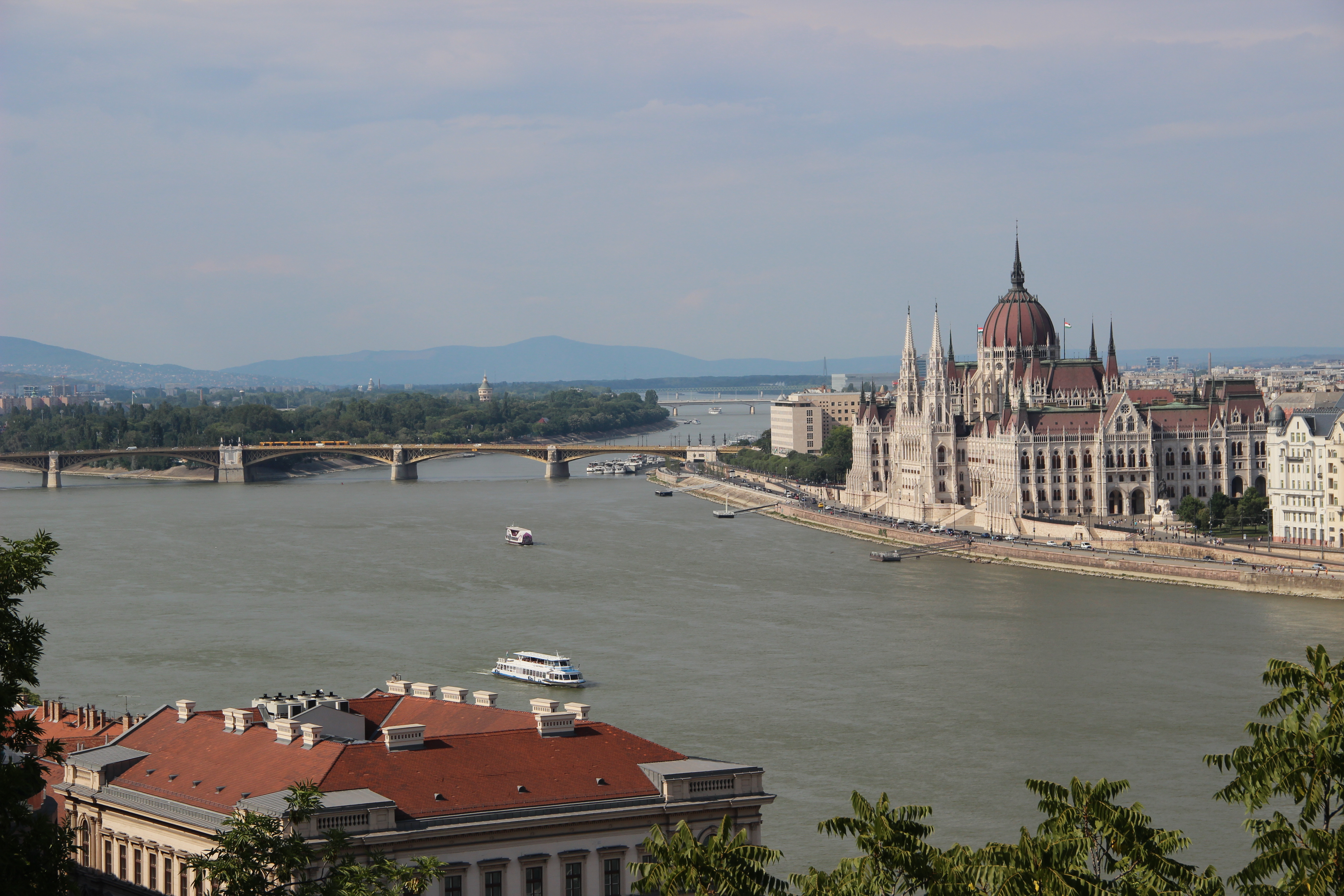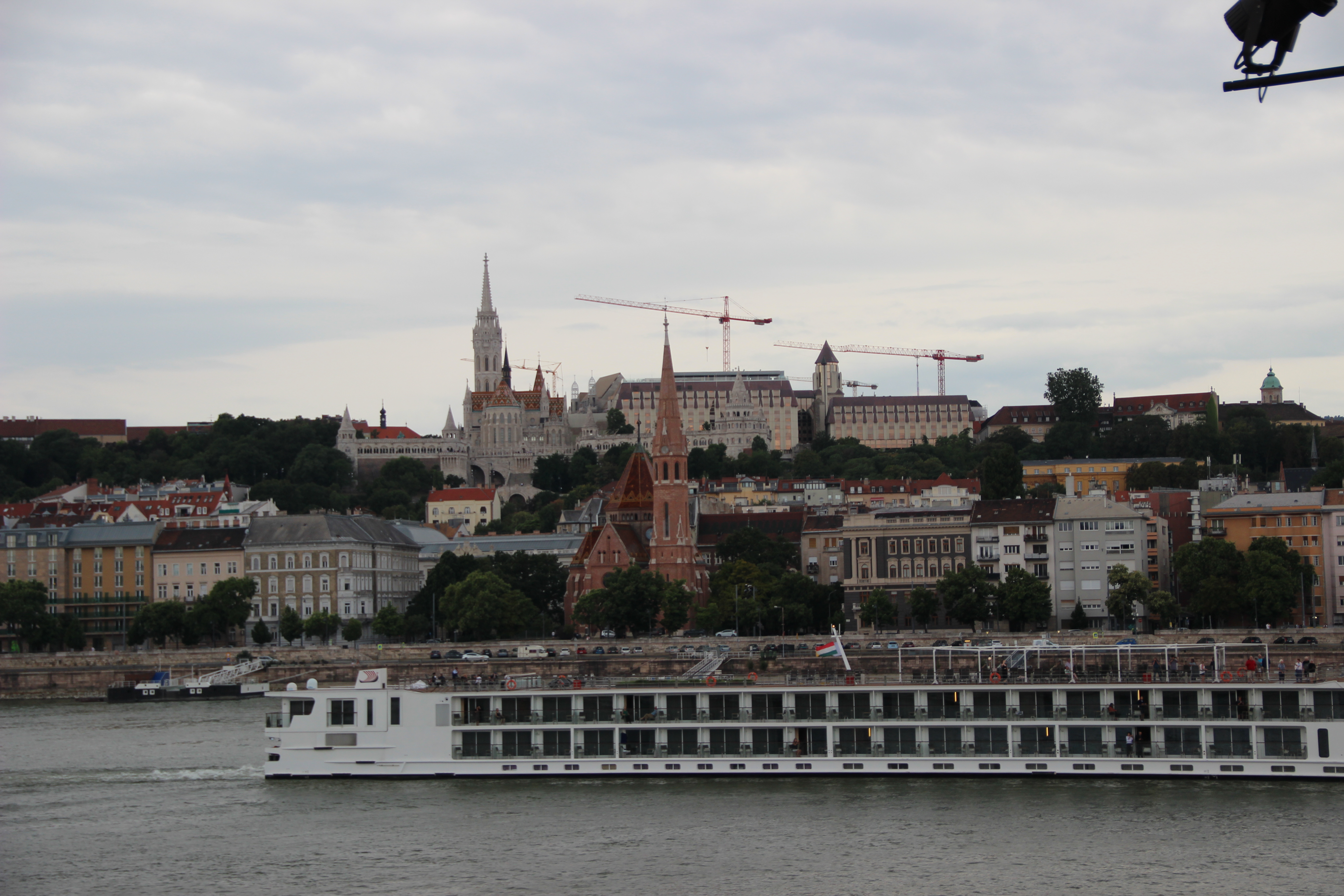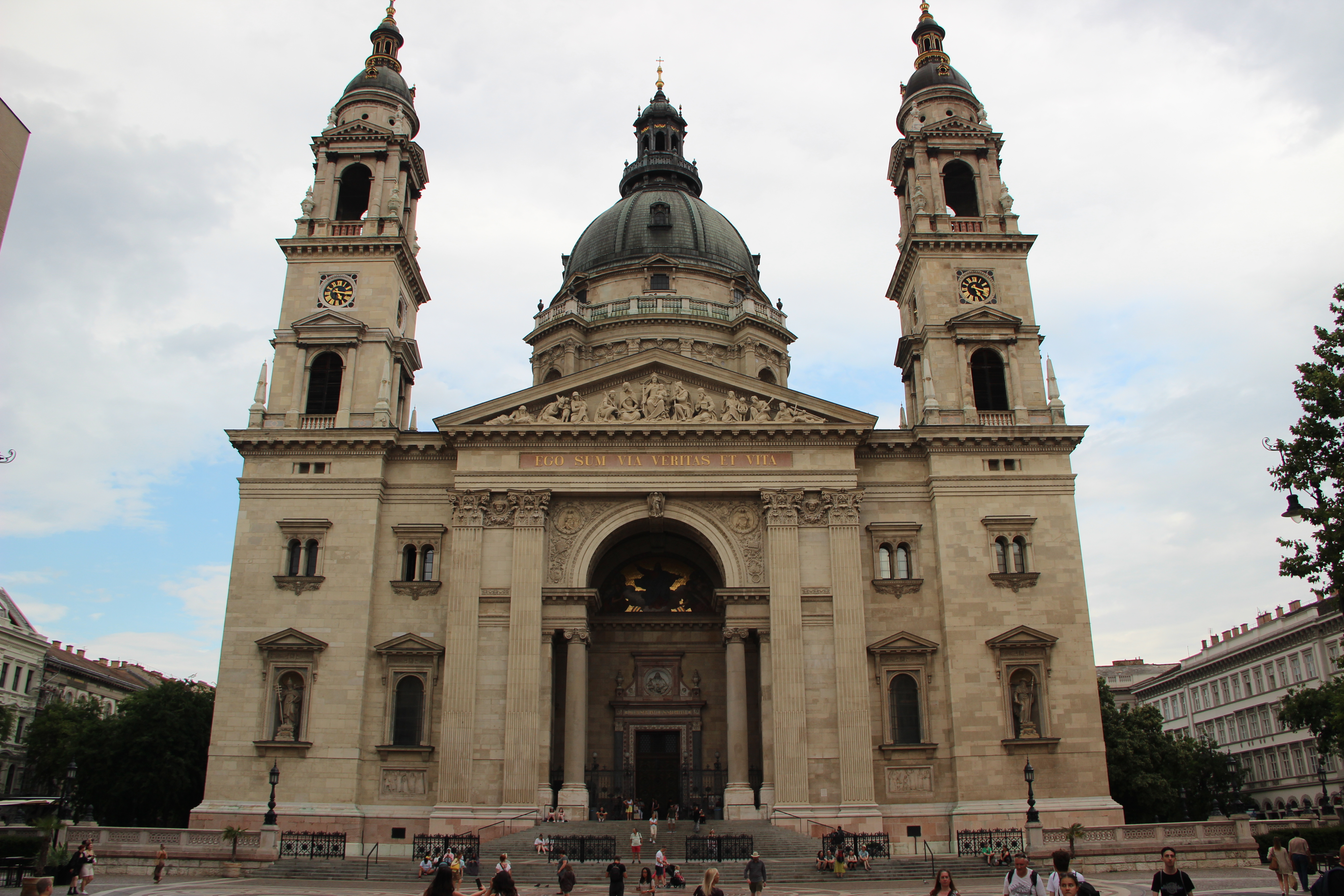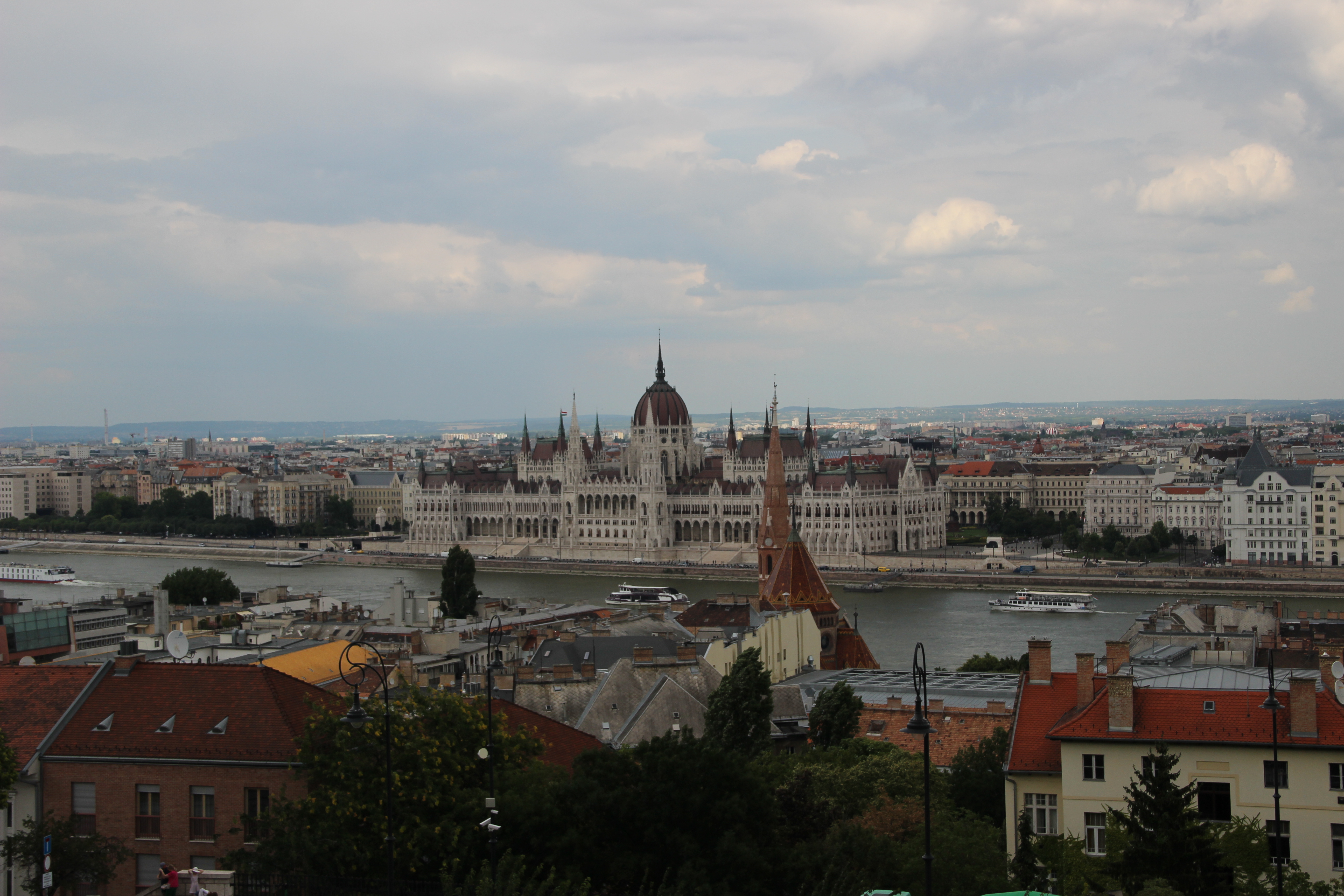 Our trip from Vienna to Budapest, though not a long distance, took us a bit more time than expected due to a couple of transportation complications, but we arrived by mid-afternoon at an air-conditioned hotel! The City Hotel of Budapest was only the second place we’ve stayed that had ac, and I was not going to take it for granted. We made a quick turnaround at the hotel and headed out for orientation, money exchange, and a guided tour. Like most of the places we’ve been to, the dominant feature and starting point for the tour is a massive church. Stephen’s Basilica, named after the founder of Hungary in the year 1000, stands watch over central Budapest today and is one of the iconic picture locations in the city. A little bit later we came to another picturesque location, the Parliament building on the banks of the Danube River. This is the third largest Parliament building in Europe, ahead of London’s, and cuts an impressive figure! It was made entirely of Hungarian materials with the exception of some marble columns imported from Italy. The fact that it stands alongside one of the world’s great rivers, the Danube, makes it even more majestic. Only the Volga River in Russia is longer than the Danube in Europe and I’ll admit I was a little starstruck gazing upon it. We have a nightime river cruise scheduled for tomorrow night and I can’t wait!