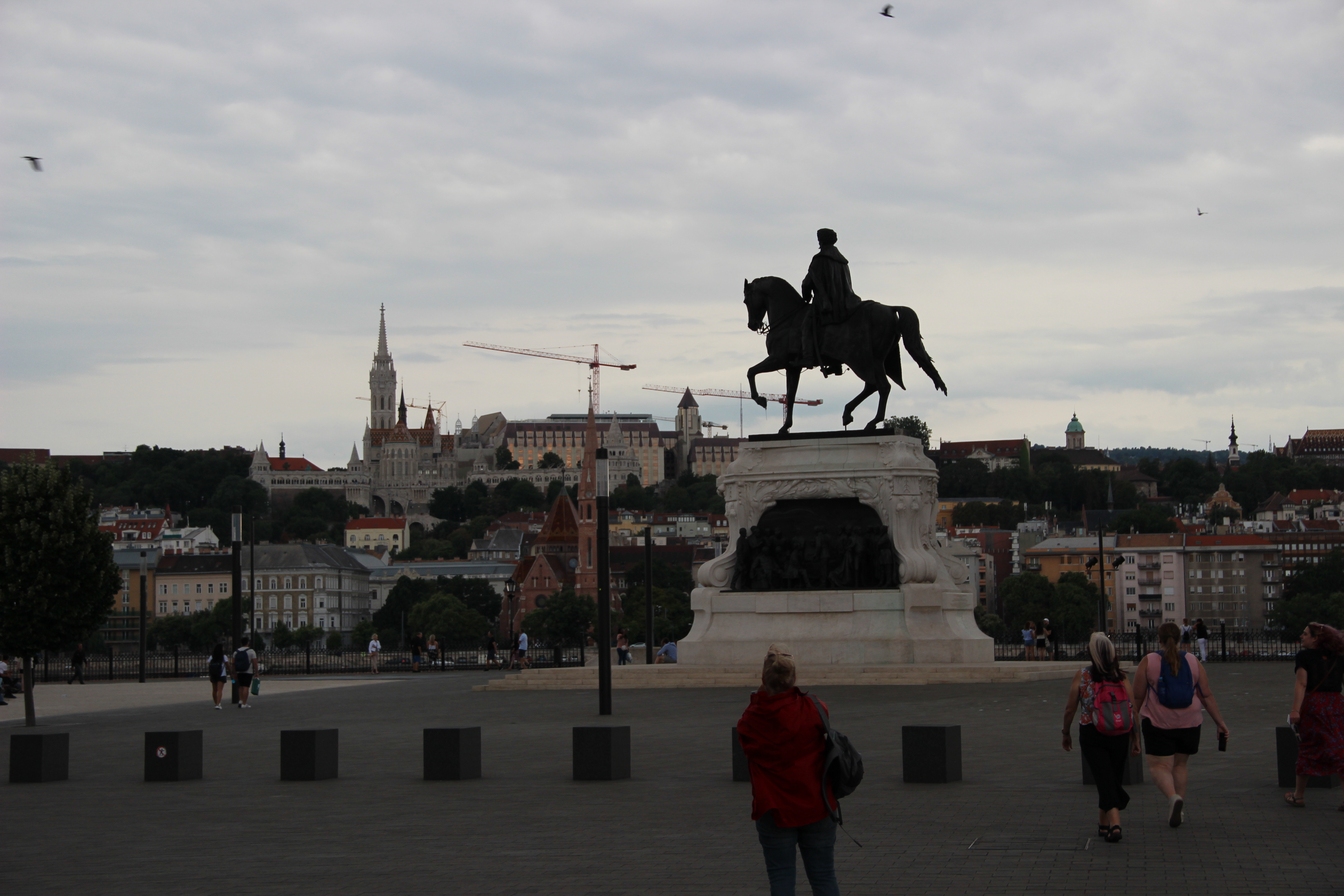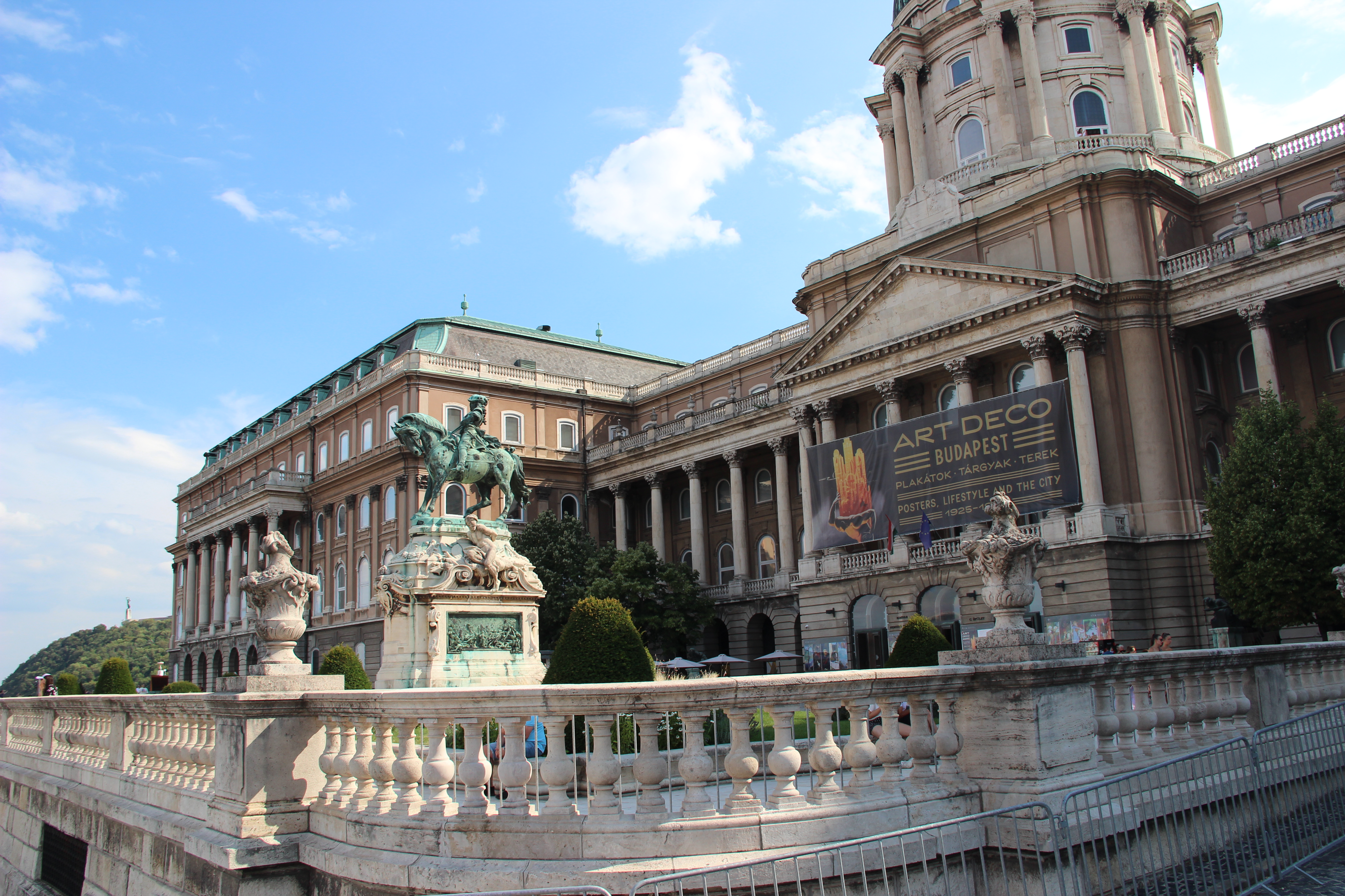 Next up for me was a walking tour of Buda Castle. I had not been across the Danube to Buda so I was excited to check it out. The part of the city I had been in so far was Pest, a broad, flat plain where the majority of the city is. The Buda side is a rocky and rugged terrain on top of which sits Buda Castle. The most heavily traveled bridge across the river, the Chain Bridge, was closed for repairs, so I had to take a long way around. Regardless, I made it in time for the tour which began in front of Matthias Church. The nearby Fisherman’s Bastion provides maybe the most popular picture backdrop in the city so we lingered there while everyone got their shot. It is named for the fishermen who used to live along the bluff and for the popular fish market that used to take place in the plaza in front of the church. Claudia, our guide, then took us into the castle complex, and yet again it proved to be more of a palace than a castle. Like nearly every prominent city we’ve been through on this journey, the Hapsburgs of the Austro-Hungarian Empire were responsible for most of the construction of these massive fortified palaces. Today, the site houses the Hungarian government including the houses the president and prime minister live in which are side by side. Parliament meets across the river from the complex, but it is all situated very close together. The tour concluded high above the river in front of the palace at an overlook where a person can see all of Pest across the Danube.