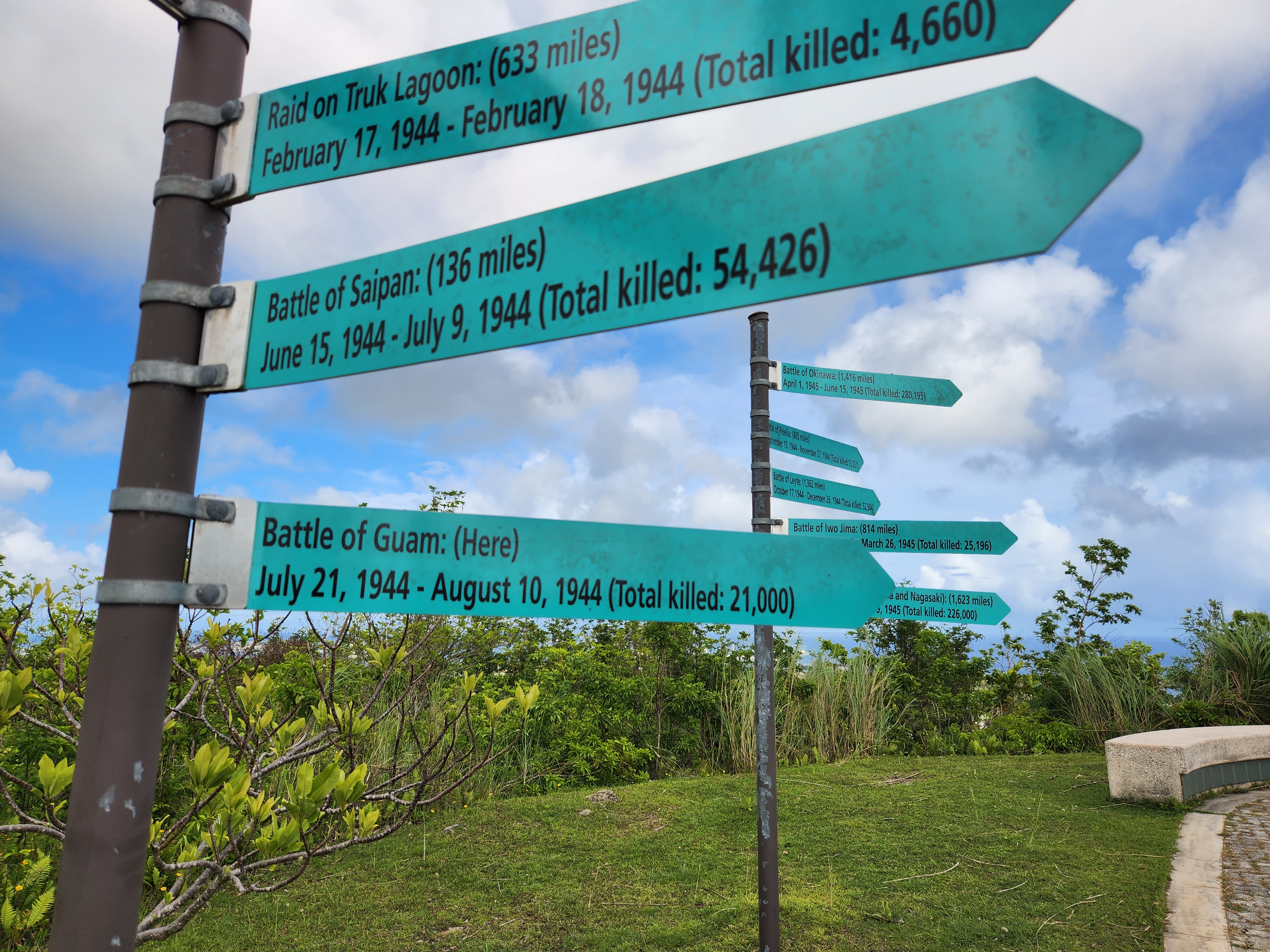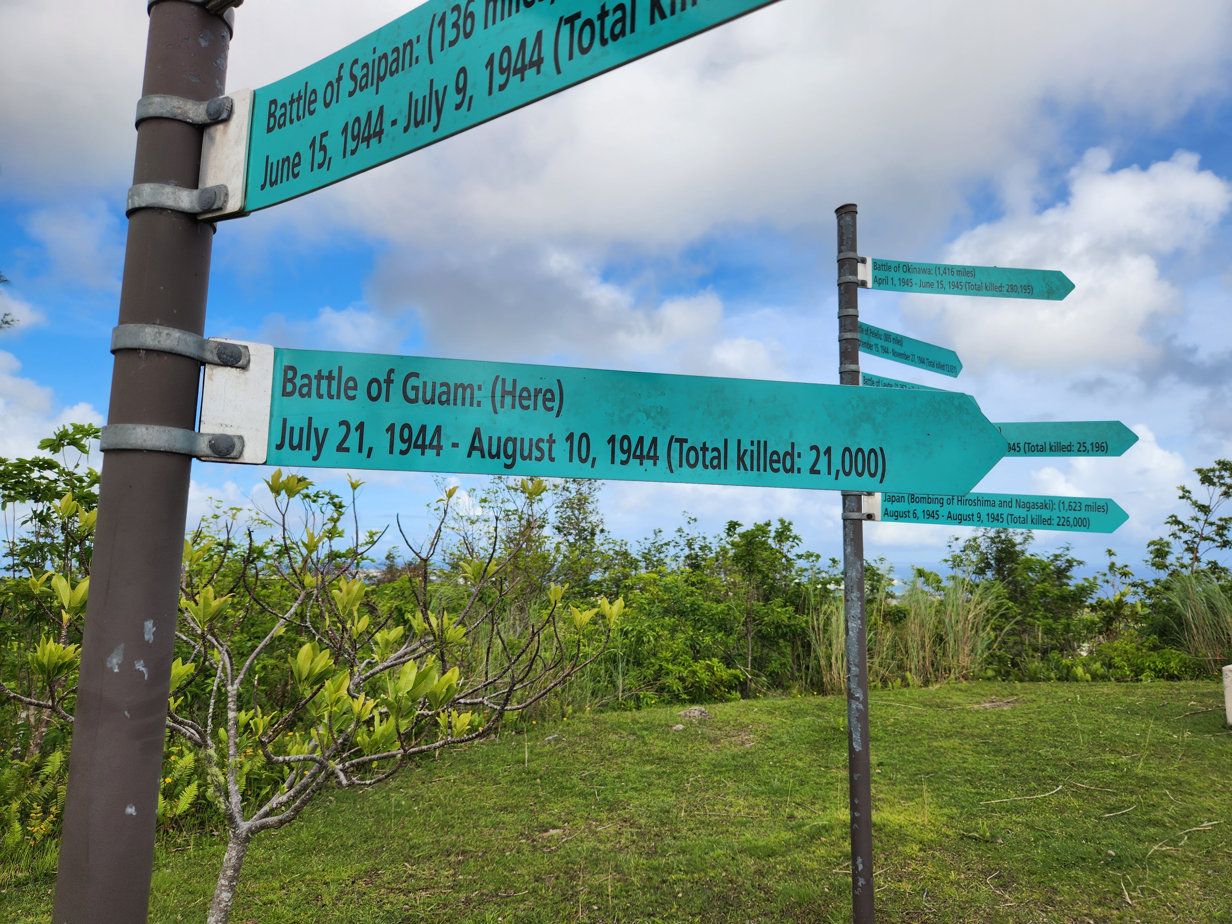 The first stop was the Asan Bay Overlook from high on the hilltop overlooking the area where the largest of the amphibious landings took place as American troops began their offensive against Japanese-held Guam in 1944. There are some worn, but helpful, descriptions and markers at the site to help tell the story and honor those who fell during the battle. The birds-eye view was a great way to begin the journey!