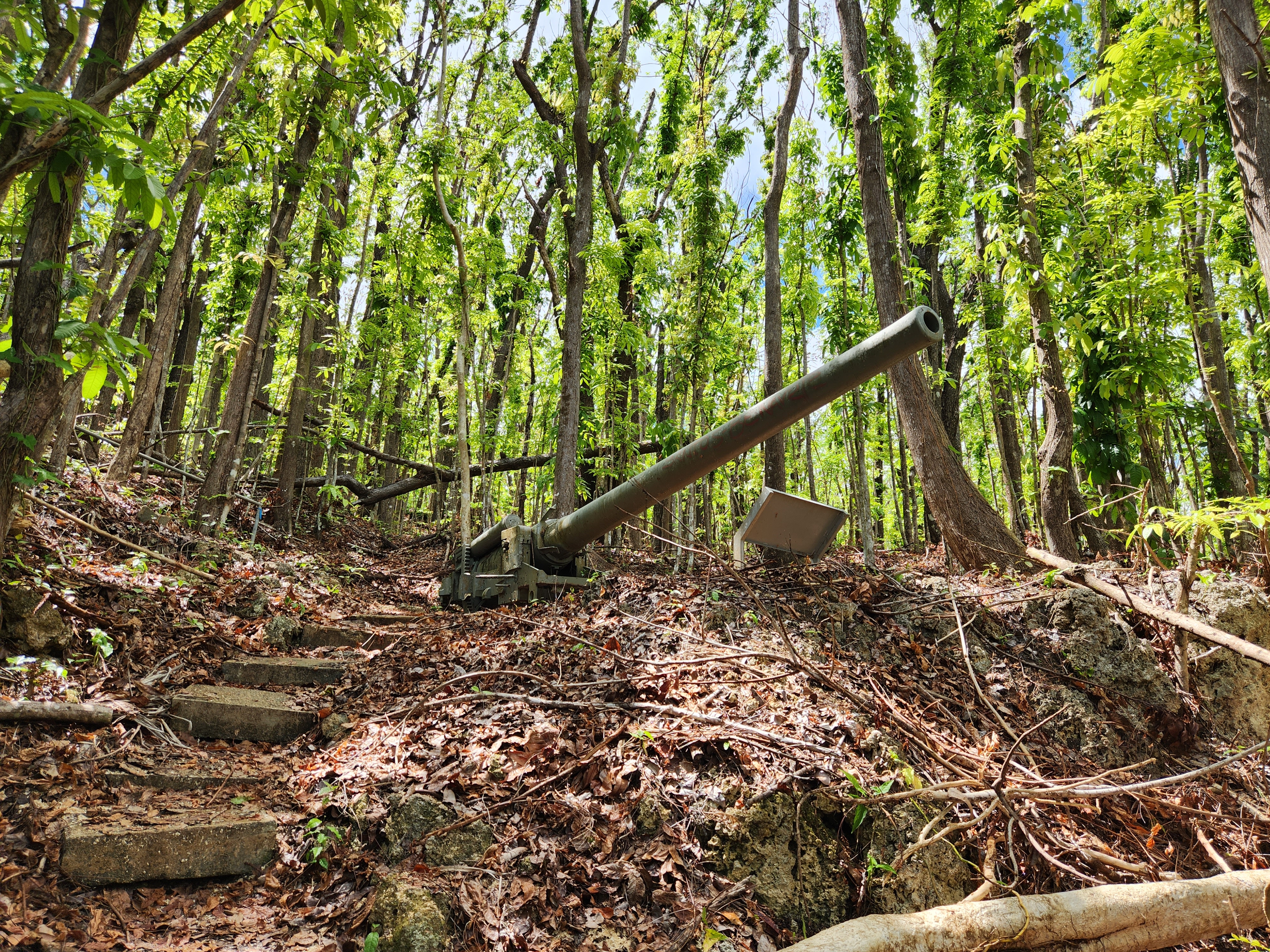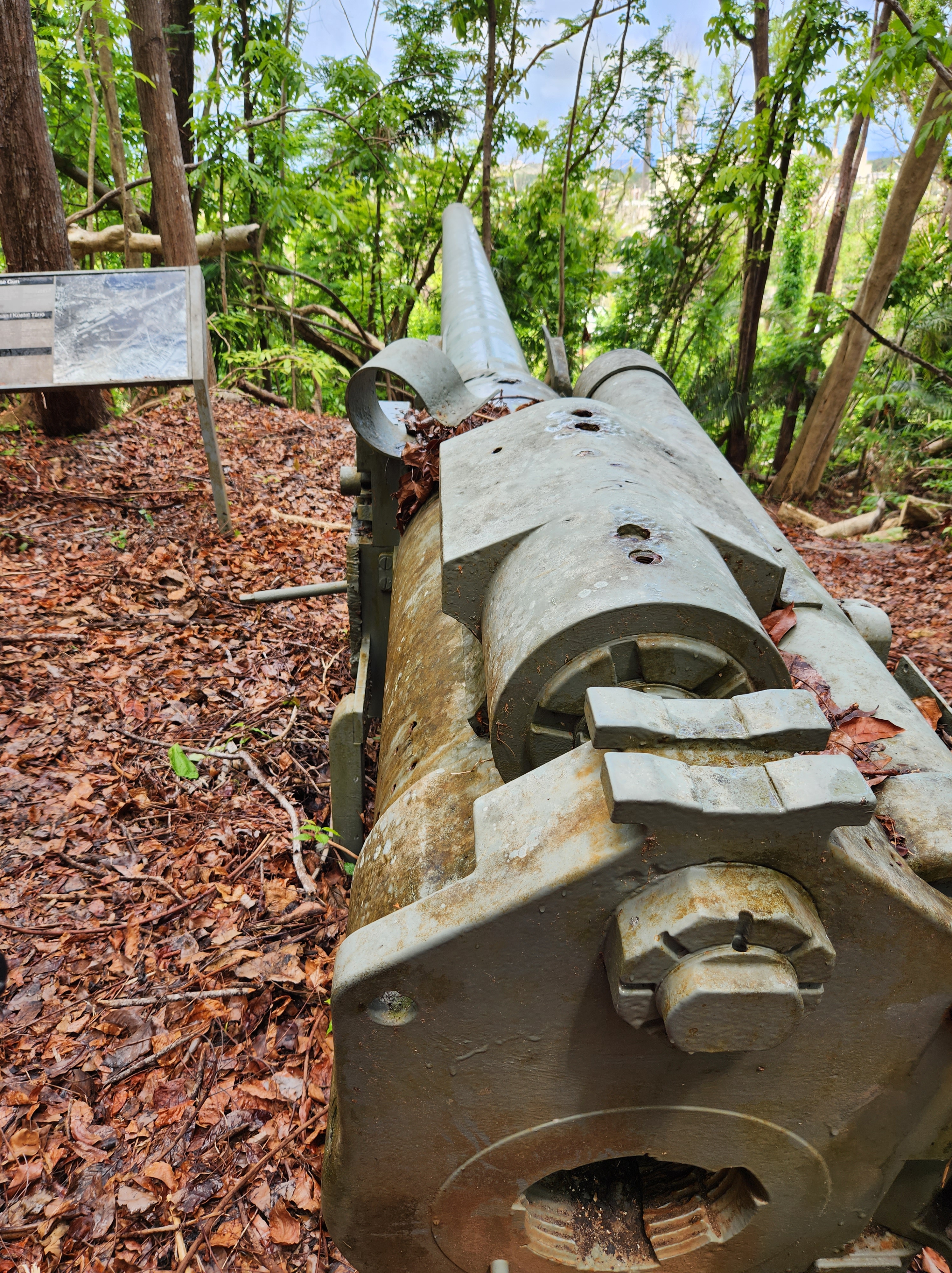 Bill’s final stop on the WWII quest in Guam was the remnants of Japanese coastal defenses from the 1940’s. These “Piti Guns” were placed high up on the hillsides to command the beaches and shoreline to deter American ships, but to no avail. The three remaining guns shown here are only still in existence because they were not operational yet when the invasion began and therefore weren’t destroyed by American battleships. They provide a glimpse of what the coastal defense batteries would look like though. Disappointingly, the visitors center for the War in the Pacific National Historic Site was close on Mondays, so there are only pictures of the outside.