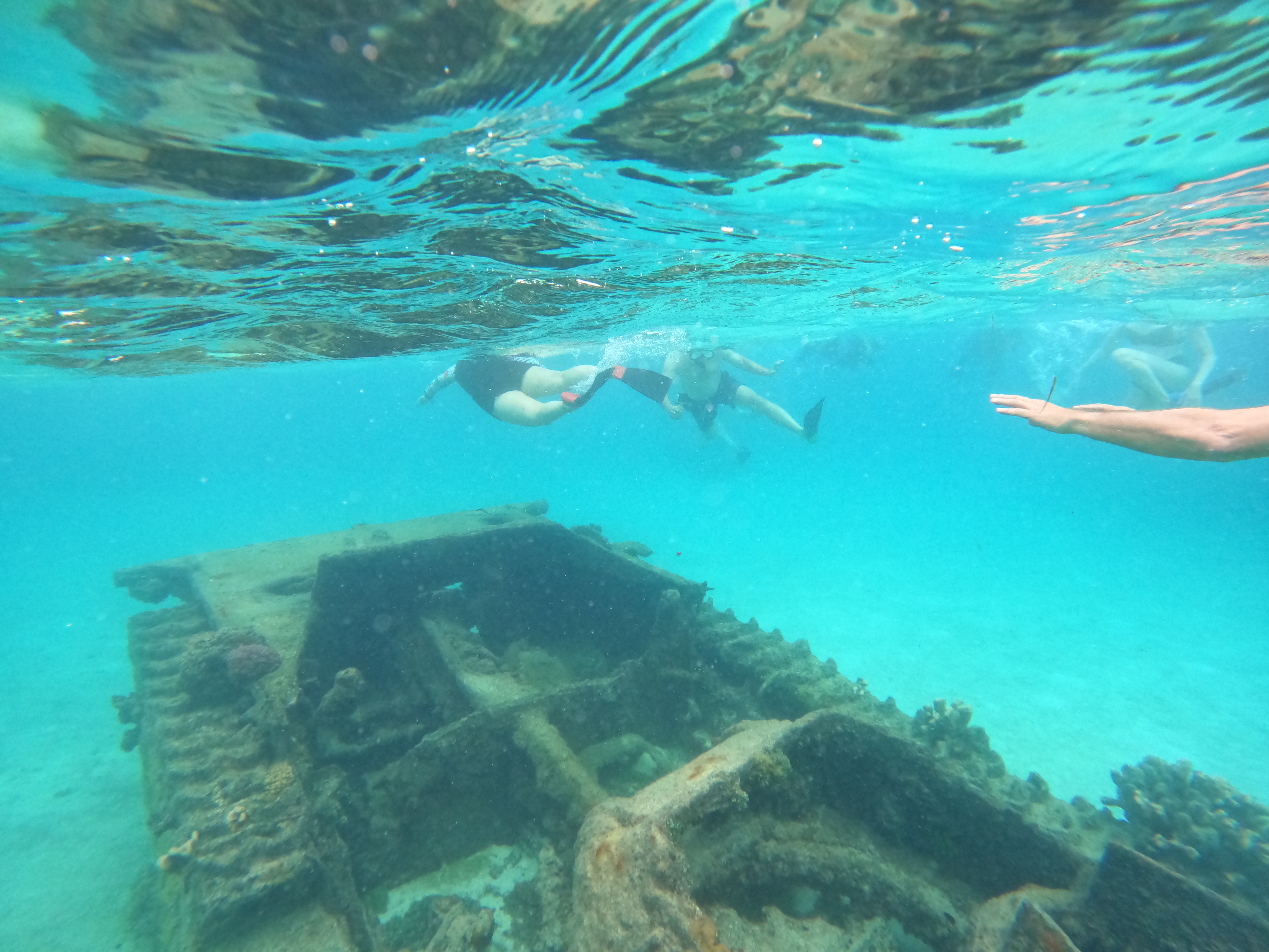 The sites varied greatly in size, level of preservation, and proximity to the surface. The first site was an American LVT (landing vehicle tracked) that was scuttled by US troops after the fighting for some reason. These were amphibious assault vehicles with tracks. This particular LVT had been prepared with additional armor in several places. It sits in about 8 feet of water and at low tide, is visible just at the surface. The water all around Saipan, but especially in the lagoon, is incredibly clear and is the most vibrant shades of blue, aqua, and turquoise and makes it very easy to see the wreckage well from the surface.
