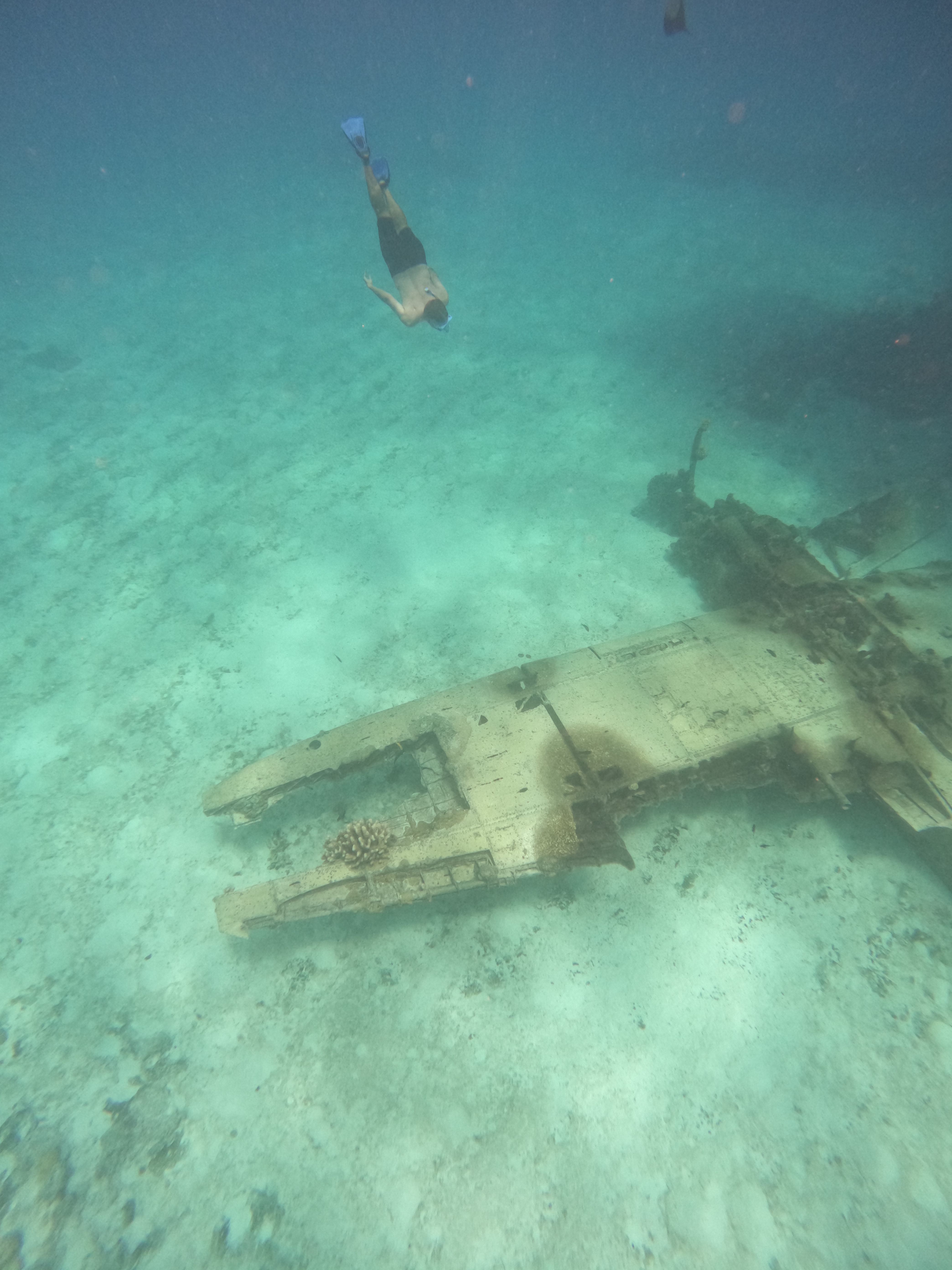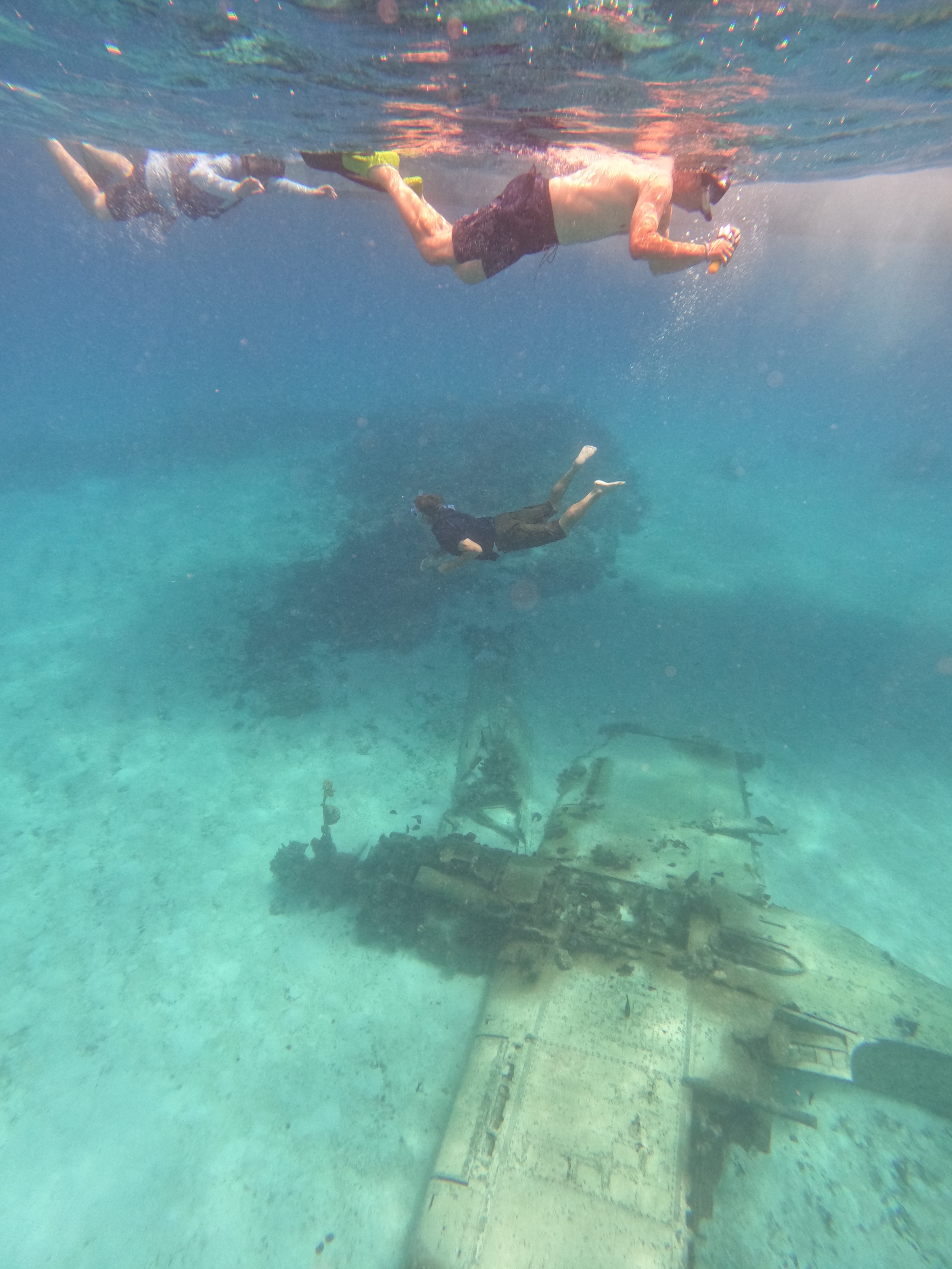 Lastly, the group was able to see the remains of an American Coronado aircraft that is known to have crashed on takeoff. This little-known wreck site still has the radio equipment and panel intact, the windshield glass remains in the cockpit frame, and an engine lays on a coral reef next to the body of the plane.