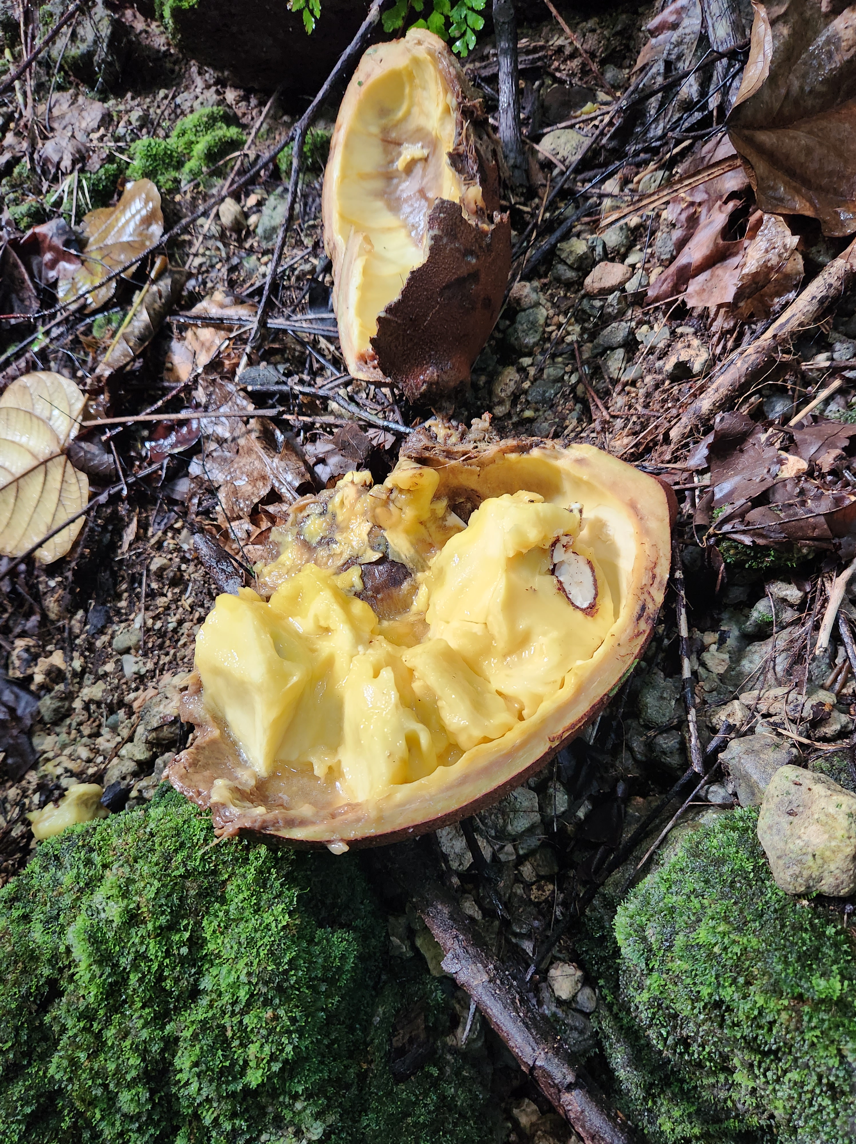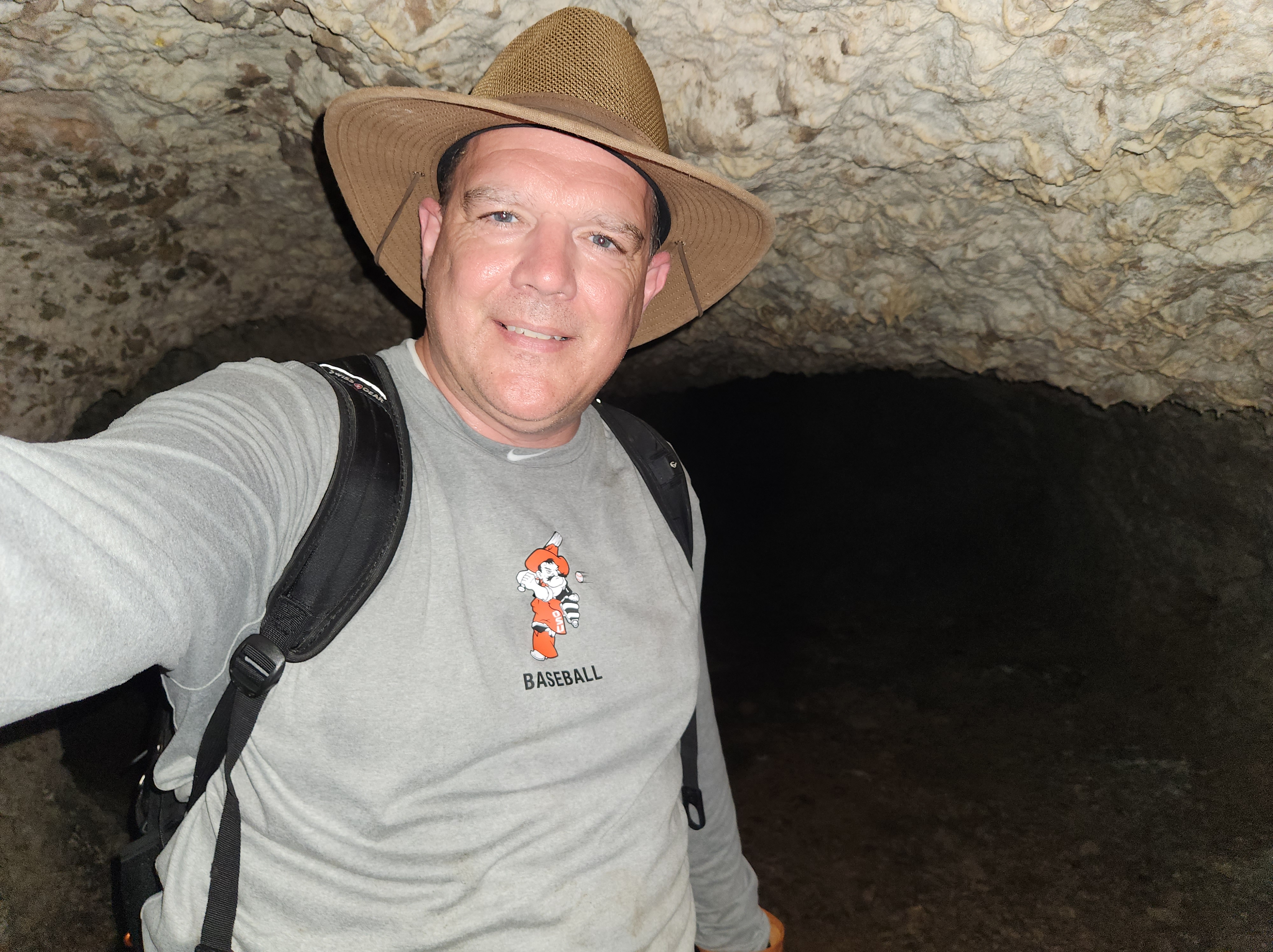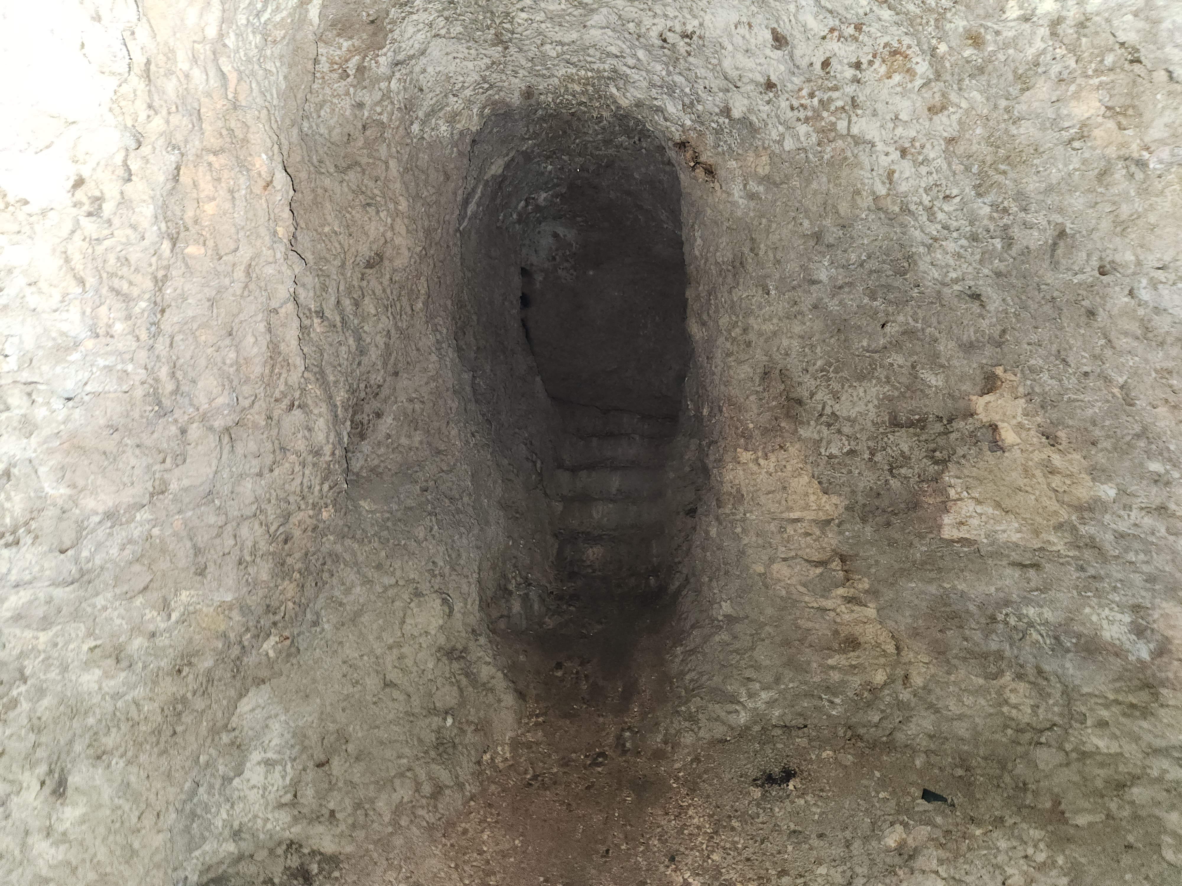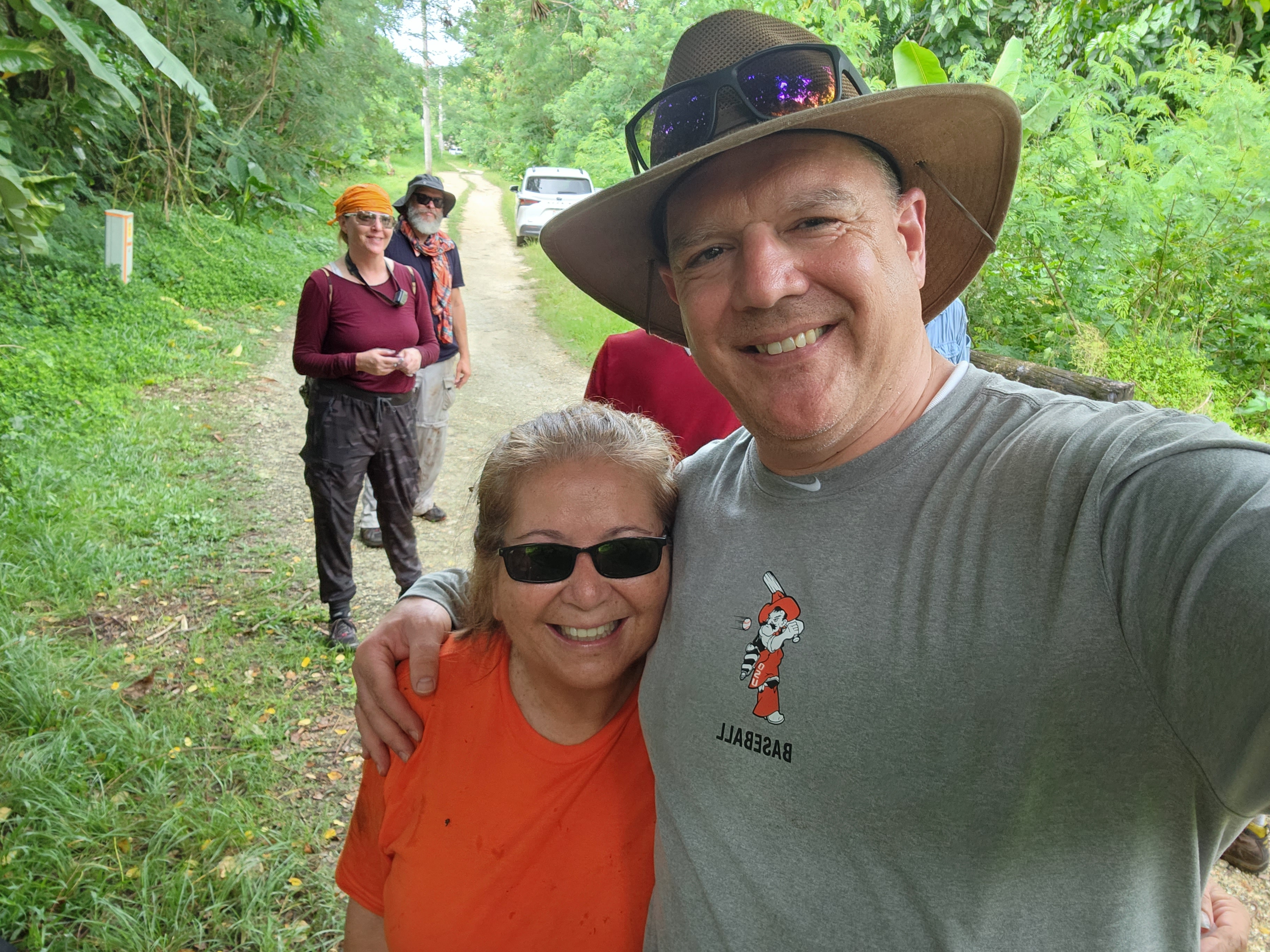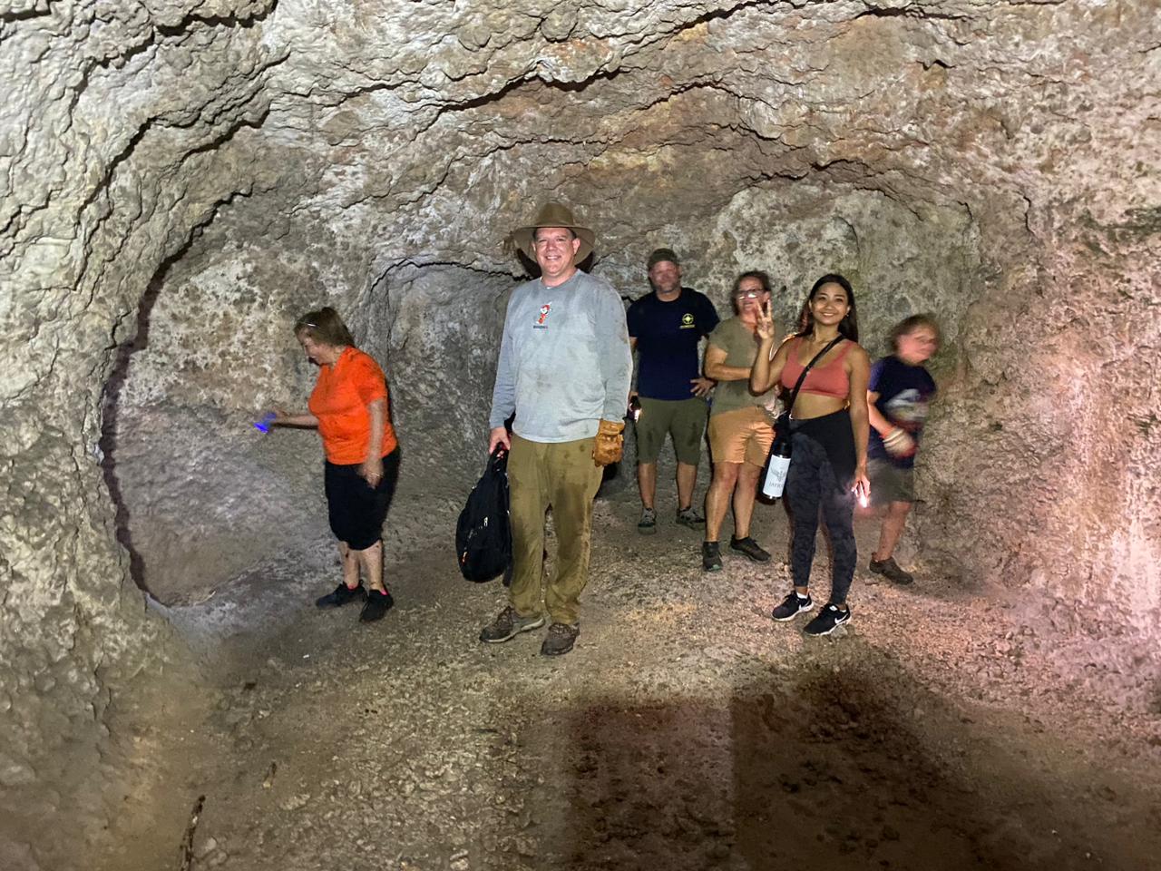 Day 5 of the workshop was an optional day that began with an Indiana Jones type of jungle experience. First, we hiked a dry creek bed through the thick vegetation up a mountainside to a Japanese tunnel system that dates back to WWII. The trek in was a bit treacherous at times and required teamwork in the form of boosting, pulling, and holding ropes for each other to get everyone to the destination, but it was definitely worth it! The tunnel system had four entrances, some of which were more difficult to enter than others, and was an intricate, man-made set of caverns large enough to stand upright and walk in. This complex likely would have been a storage area and refuge for Japanese soldiers in the final days of the Battle of Saipan as American troops closed in. There was even a stairway carved into the rock to connect a lower tunnel to an upper level. A few Japanese markings and a small piece of ceramic from the period added to the intrigue. It was quite a site to visit and we even found and tasted some “football” fruit and fresh coconut along the way!