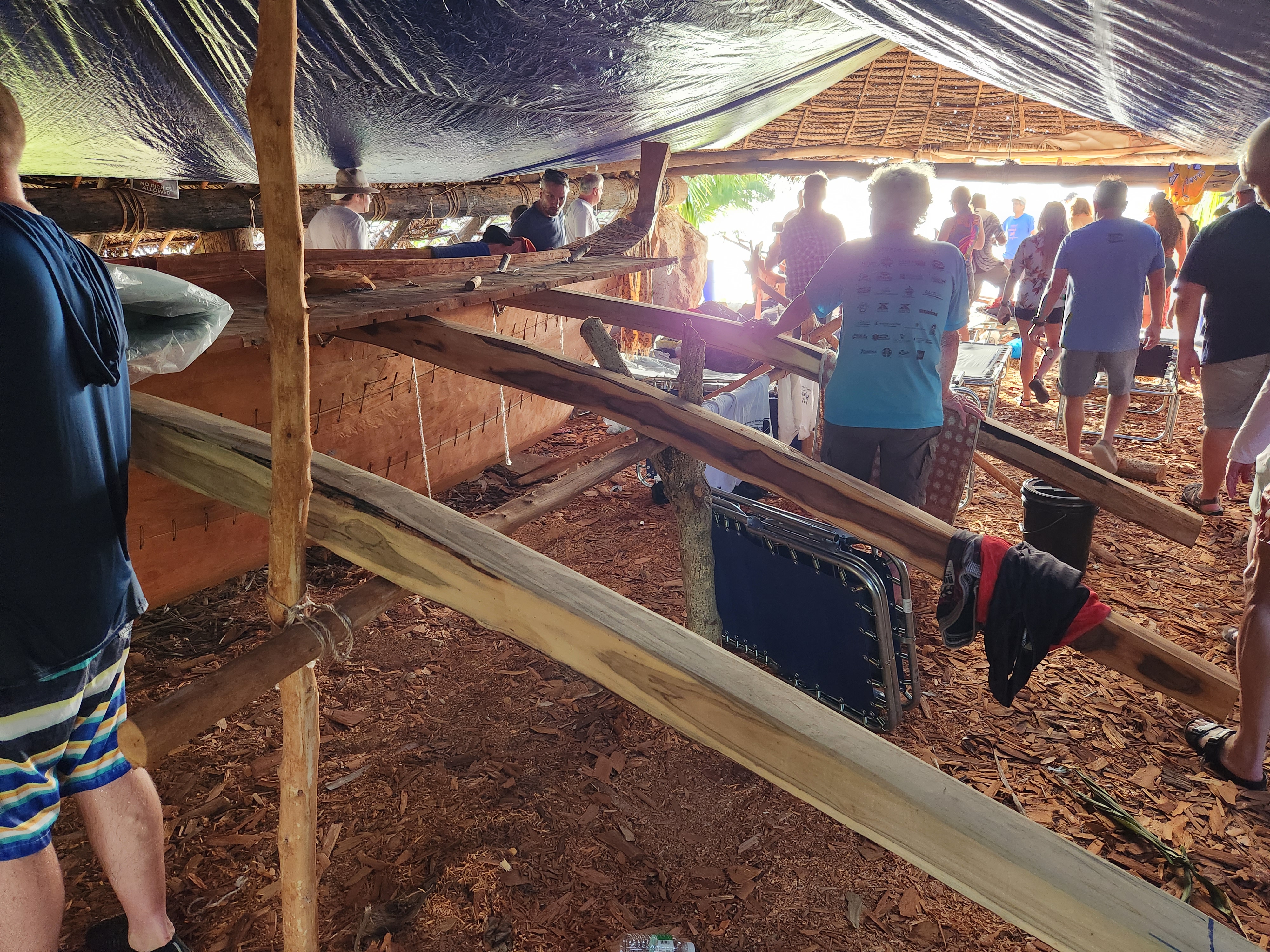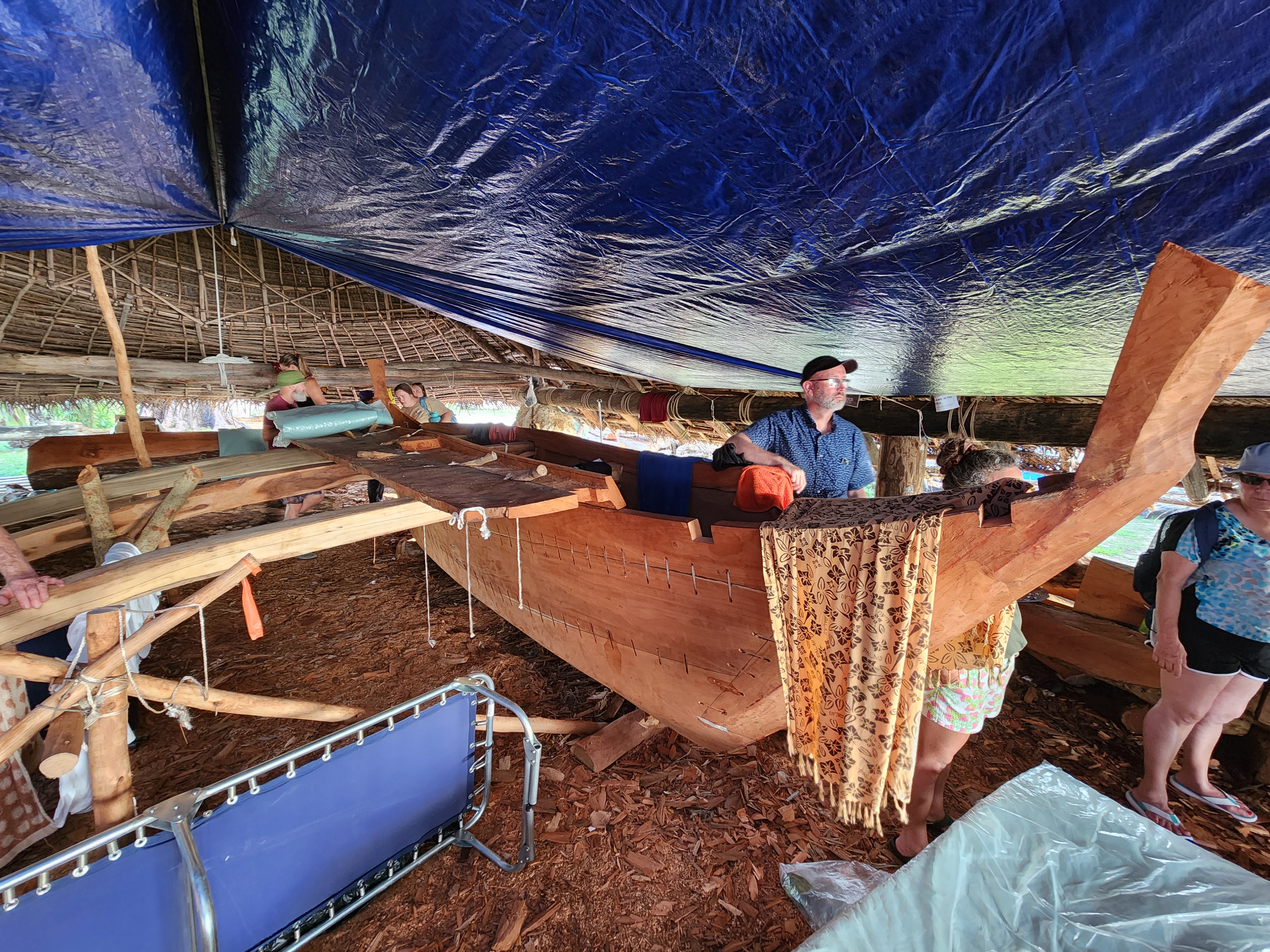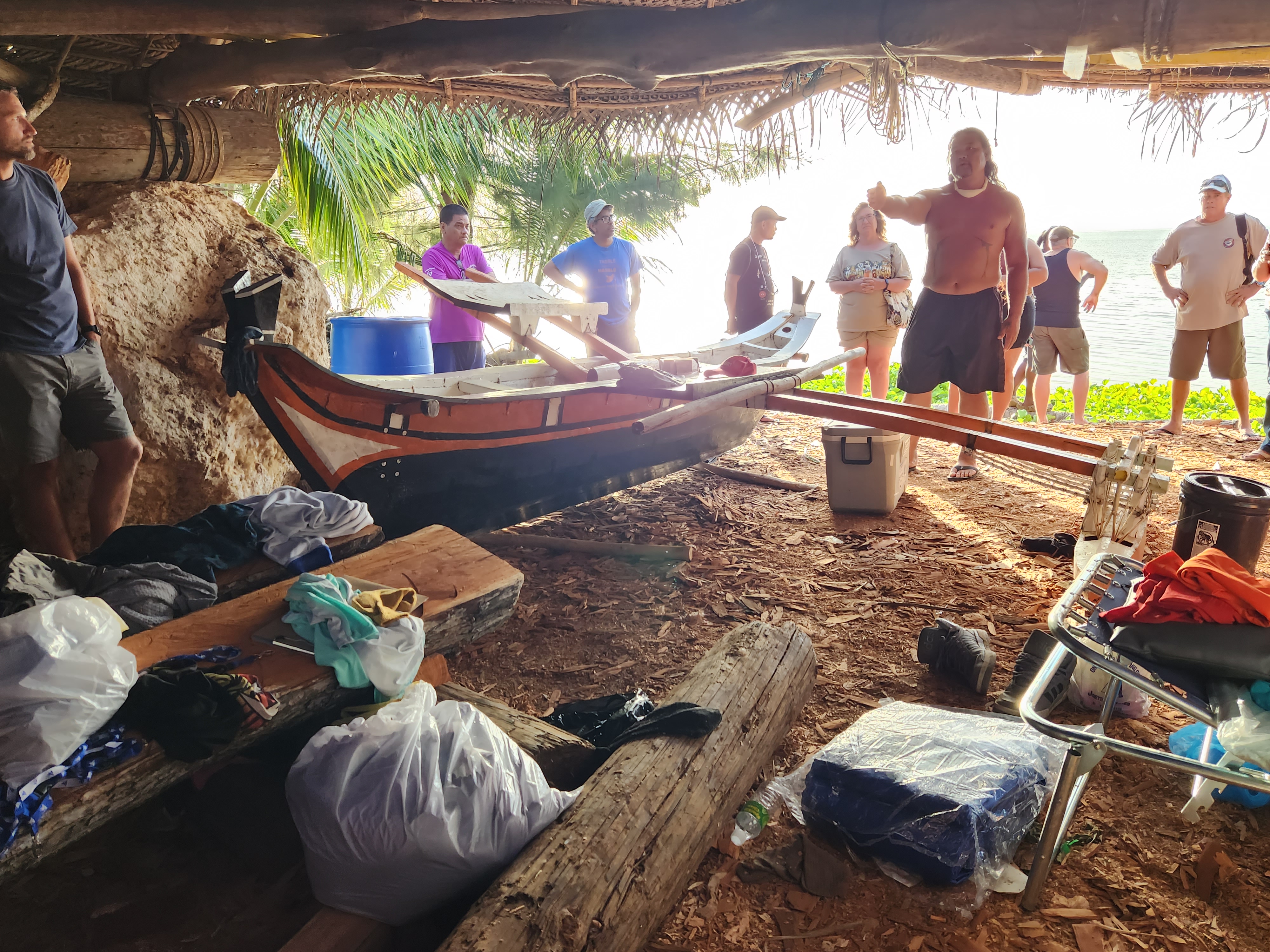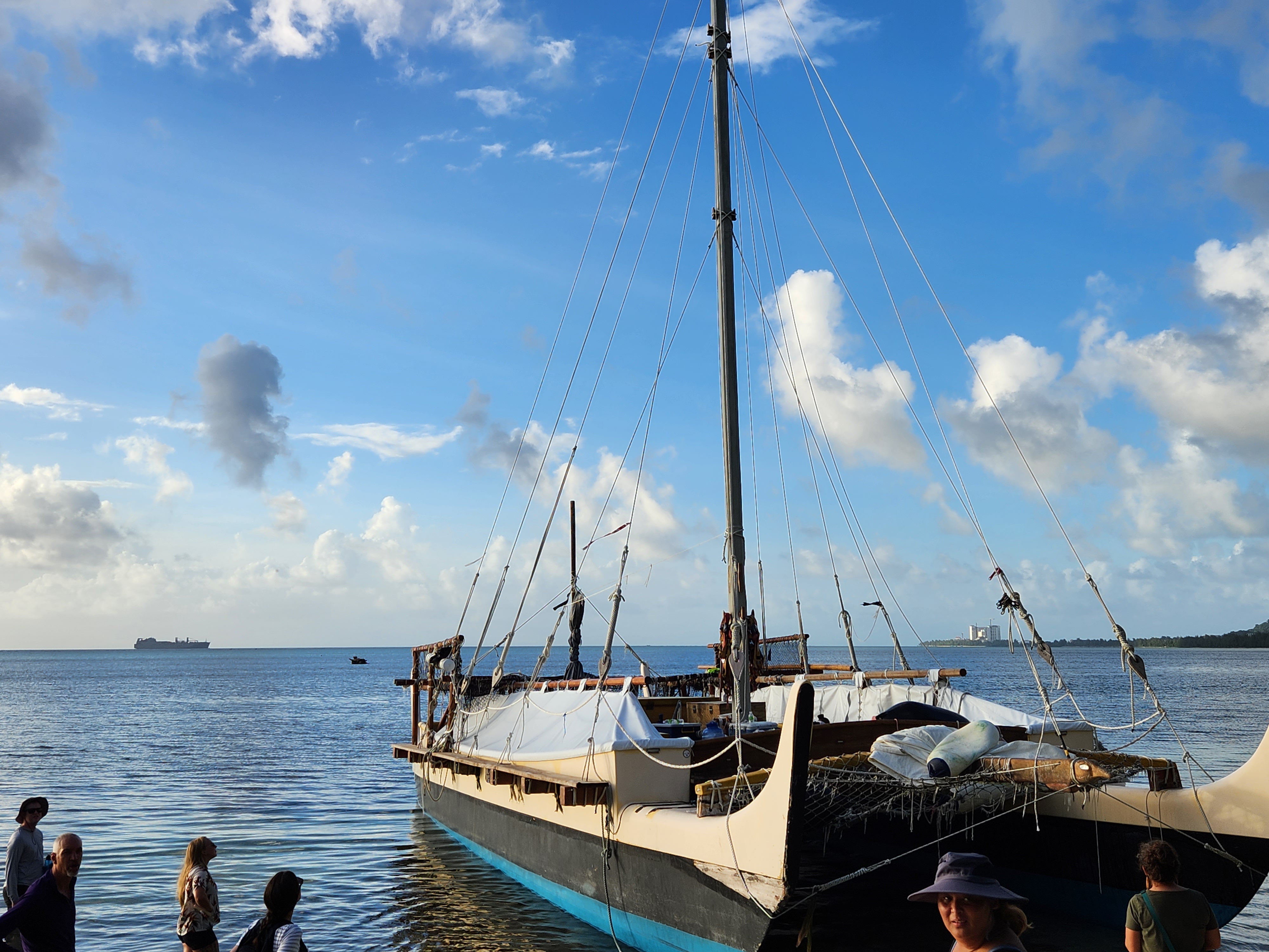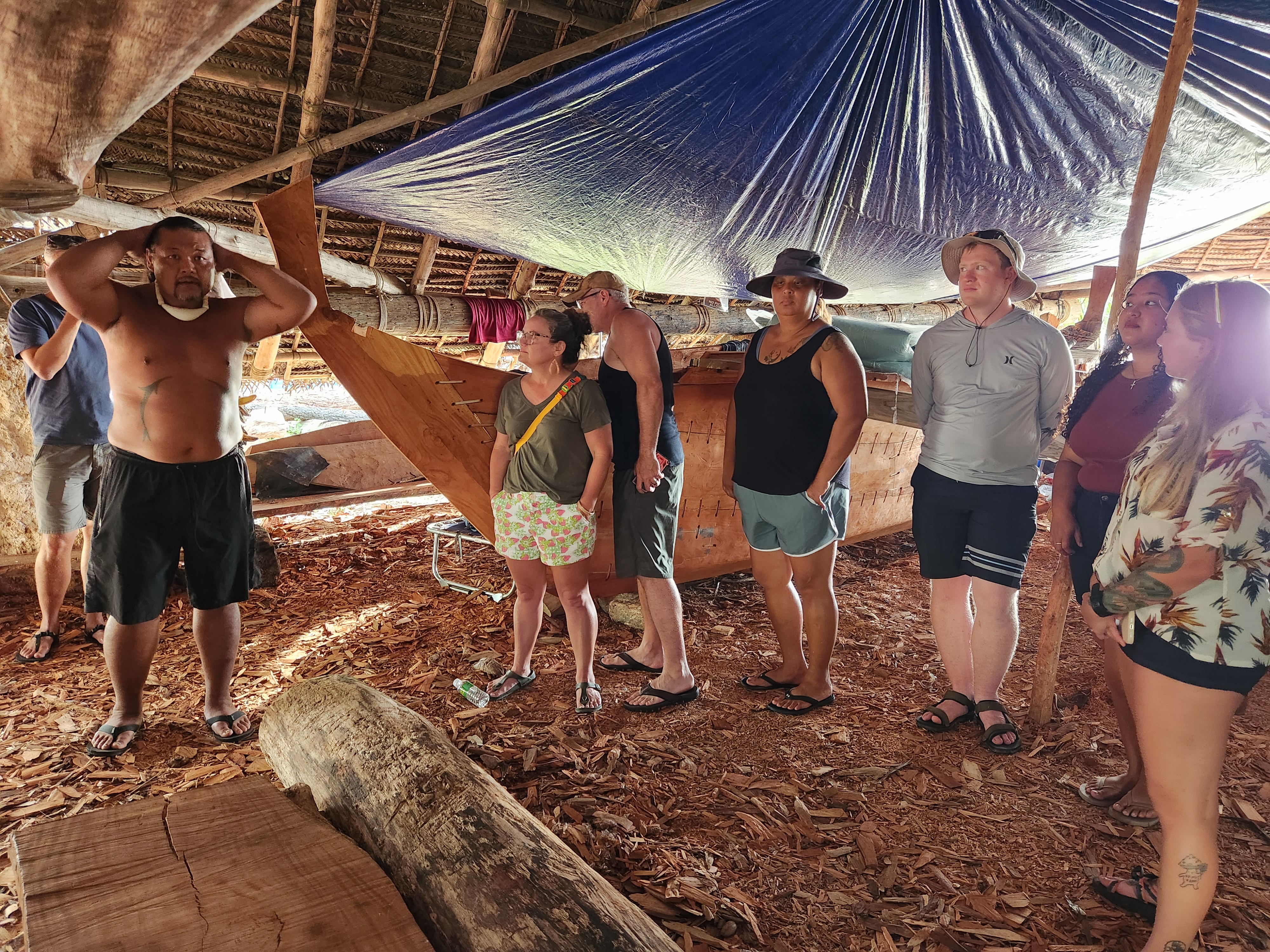 The second highlight of the day was an evening visit with a local Chamorro “navigator” who builds traditional canoes in the old style using breadfruit tree and mahogany wood and navigates only by the stars. Some of the canoes take years to construct and finish. He and some of the other navigators are able to sail using traditional techniques as far as Hawaii in some of their larger vessels. It was quite a treat to spend time with these revered indigenous craftsmen.