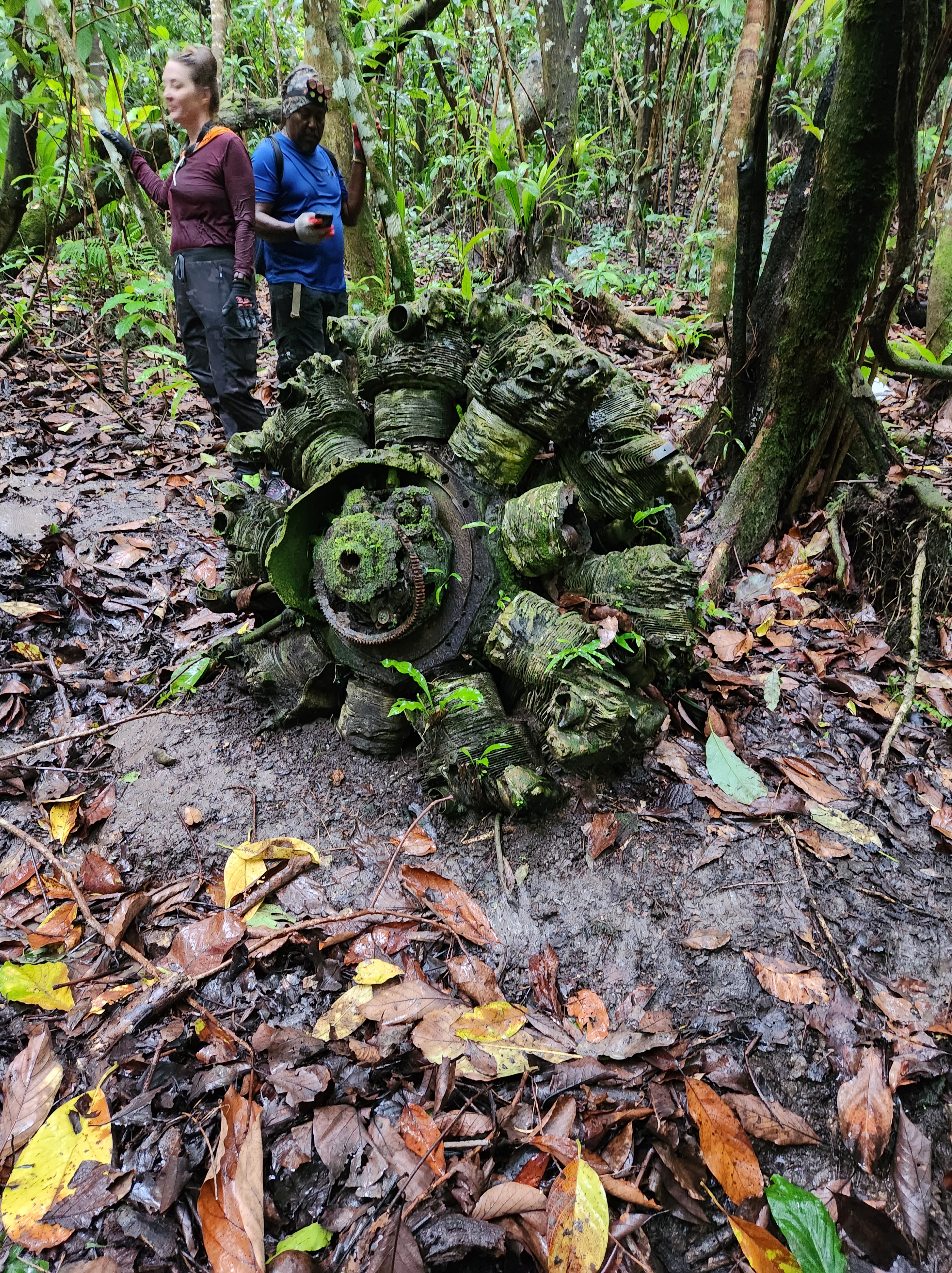 The morning of Day 7 was spent in the classroom discussing the key takeaways of the week and how best to share the knowledge that was gained. After lunch, it was back out to the jungle for more “Fredding”. (Fred was the adventure guide and outdoorsman who led the group) This hike in particular became very treacherous as it progressed due to the heavy rain that fell throughout. It is the rainy season after all, but most of the previous rain showers had passed quickly. This one did not. The hike was led by Fred and a local landowner who had located many pieces of wreckage from an American B-29 bomber that crashed during WWII. The team was led down the mountain to see a couple of the engines, one with the propeller still attached, parts of the fuselage, and some of the guns from the plane. Everyone got utterly soaked and there were a few minor injuries due to the difficult conditions, but eventually all were accounted for back up the mountain.