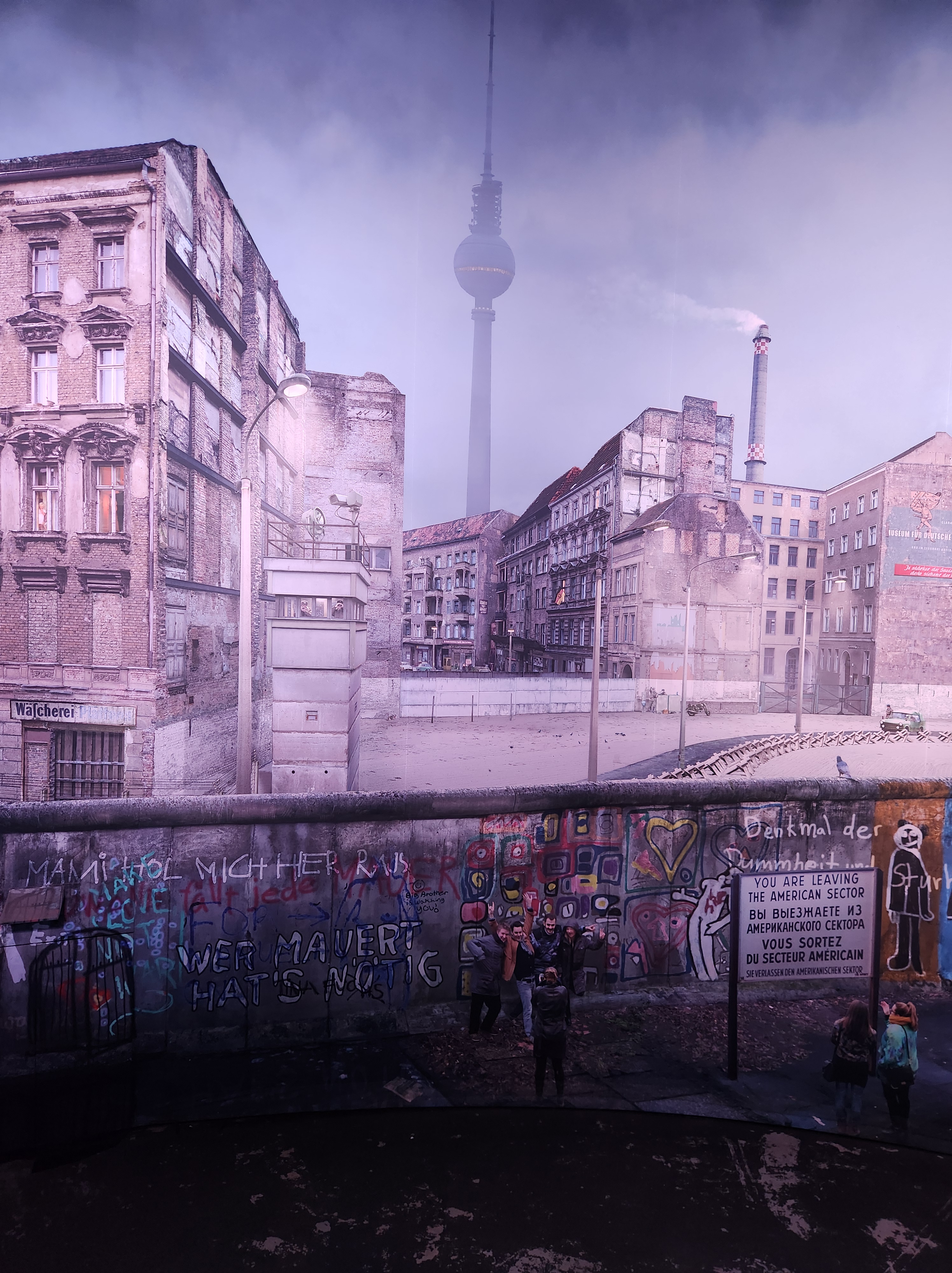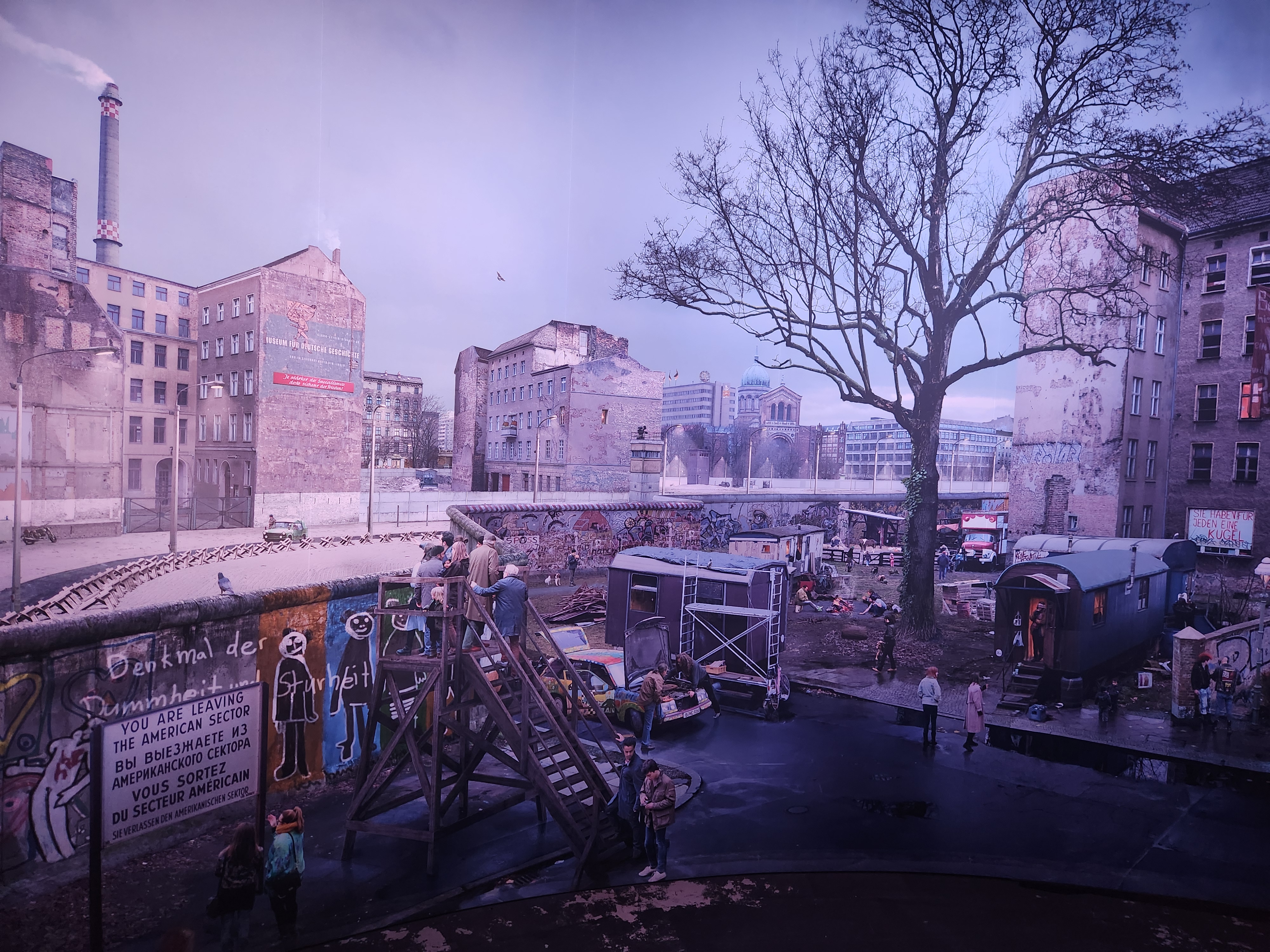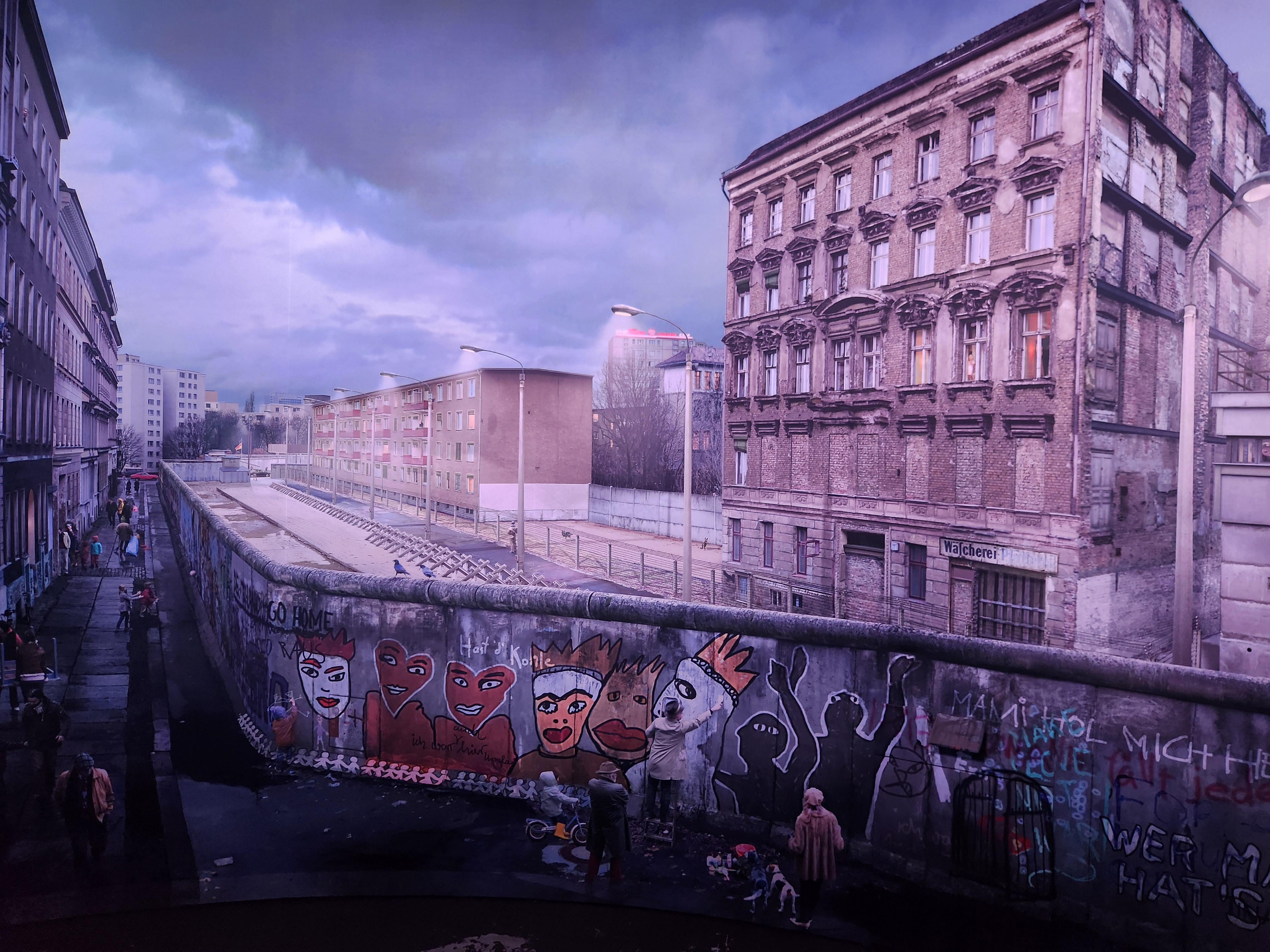 After the TOP tour ended, I had three days in Berlin to explore and take in some more sights. I moved to a hotel across town from where we’d been at Alexander Platz to a place near Potsdamer Platz. After settling in, I set out for the Berlin Wall panorama near Checkpoint Charlie. The exhibit sits directly on top of the old Berlin Wall, evenly divided down the center into East and West Berlin. It’s an amazing artistic work by an artist named Yadegar Asisi that depicts Berlin in the 1980s, separated by the wall, recreated by thousands of photographs combined into one large painting. It was incredible! It’s so large that you climb sets of stairs to an elevated viewing platform to get perspective and to be able to see it all. It really makes it feel like you are there!