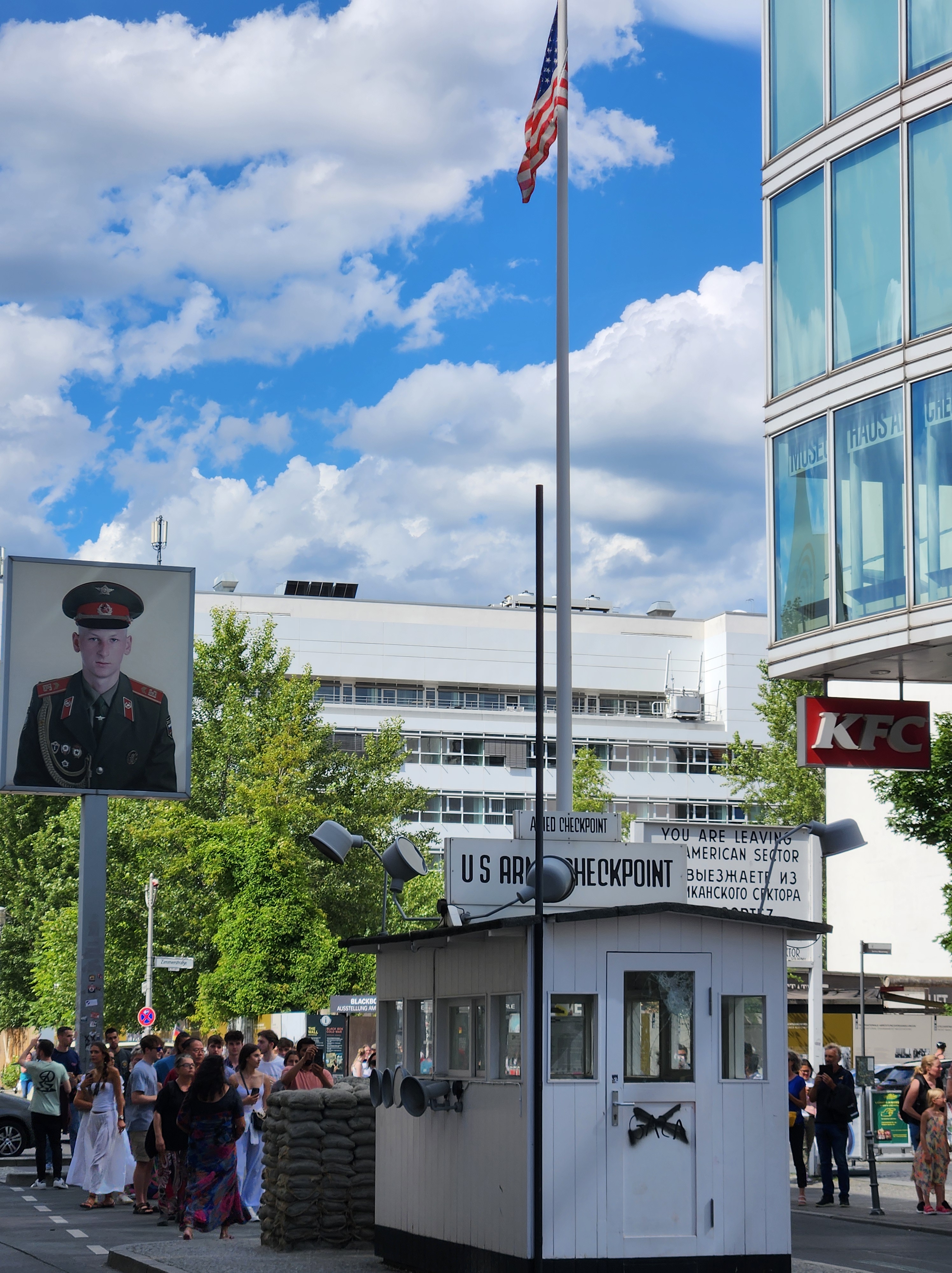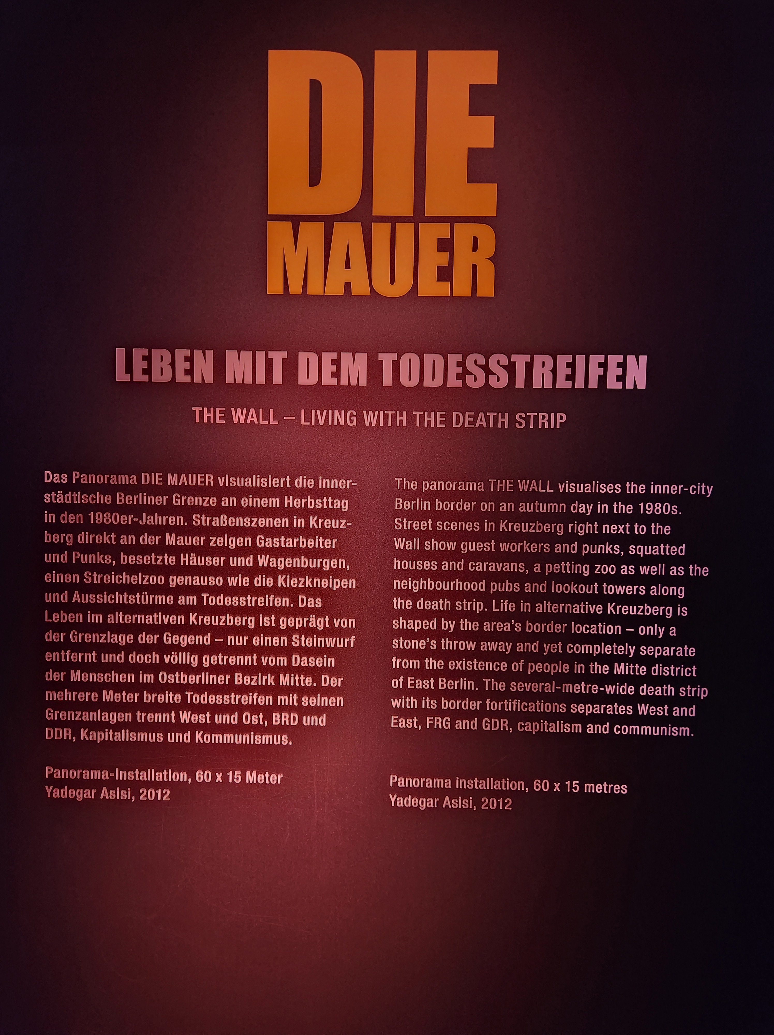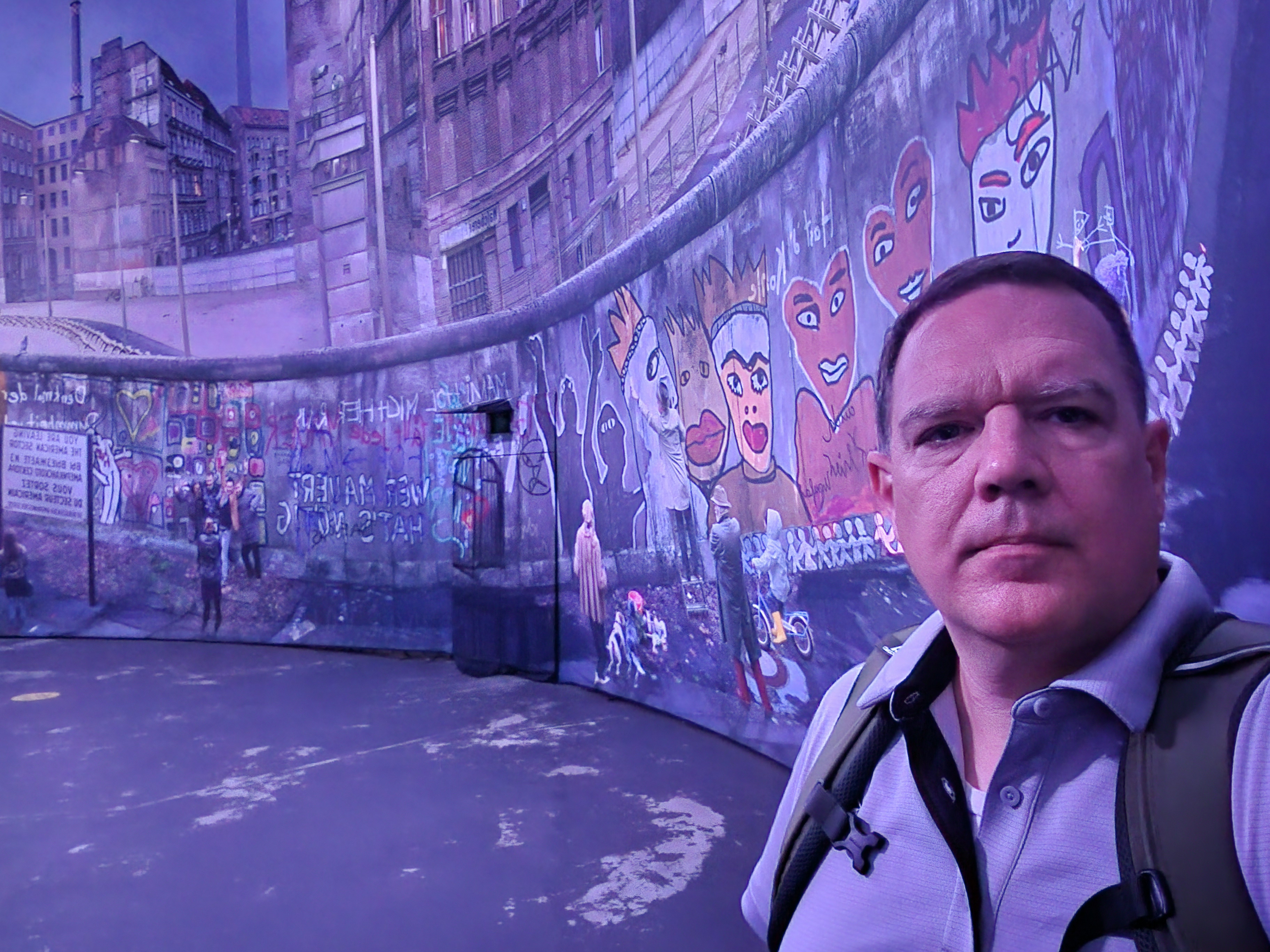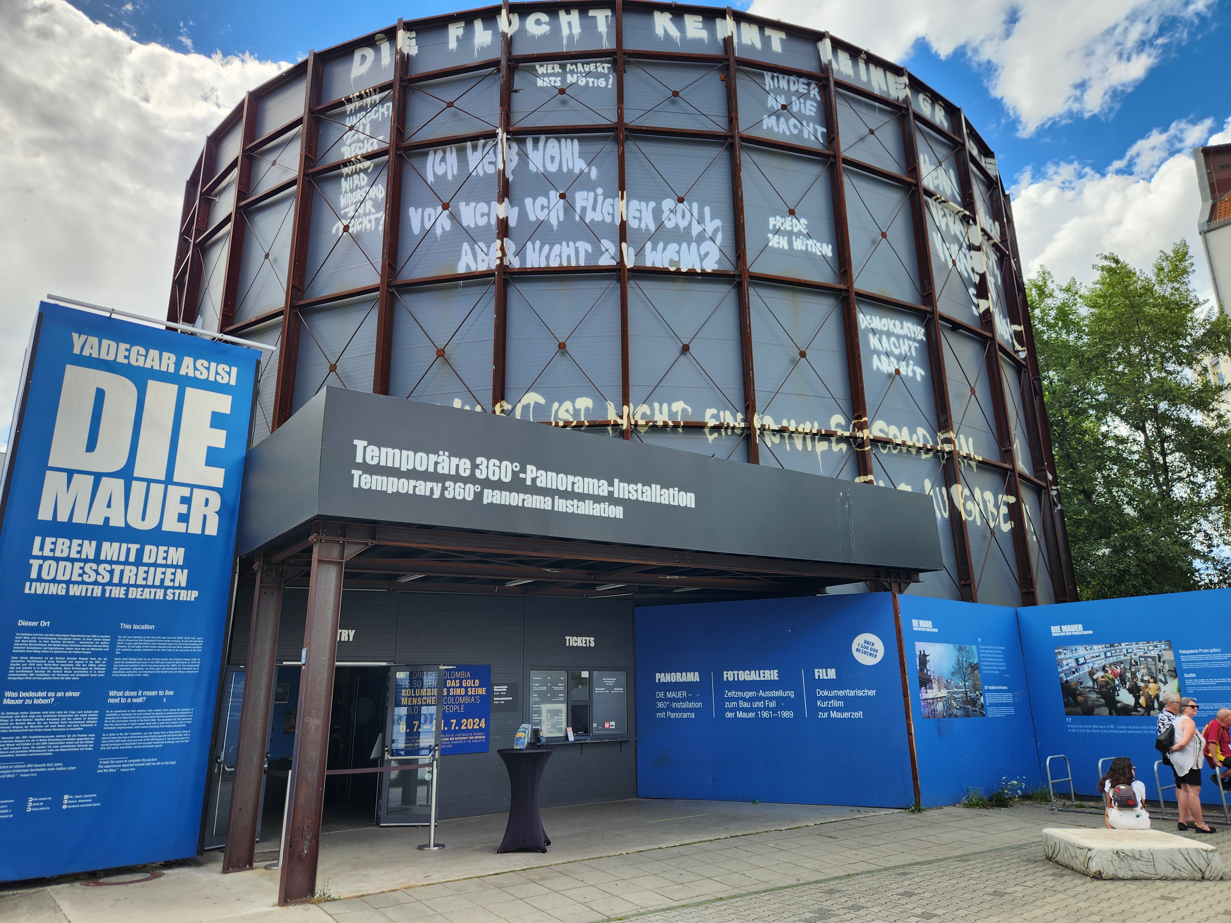 After the TOP tour ended, I had three days in Berlin to explore and take in some more sights. I moved to a hotel across town from where we’d been at Alexander Platz to a place near Potsdamer Platz. After settling in, I set out for the Berlin Wall panorama near Checkpoint Charlie. The exhibit sits directly on top of the old Berlin Wall, evenly divided down the center into East and West Berlin. It’s an amazing artistic work by an artist named Yadegar Asisi that depicts Berlin in the 1980s, separated by the wall, recreated by thousands of photographs combined into one large painting. It was incredible! It’s so large that you climb sets of stairs to an elevated viewing platform to get perspective and to be able to see it all. It really makes it feel like you are there!