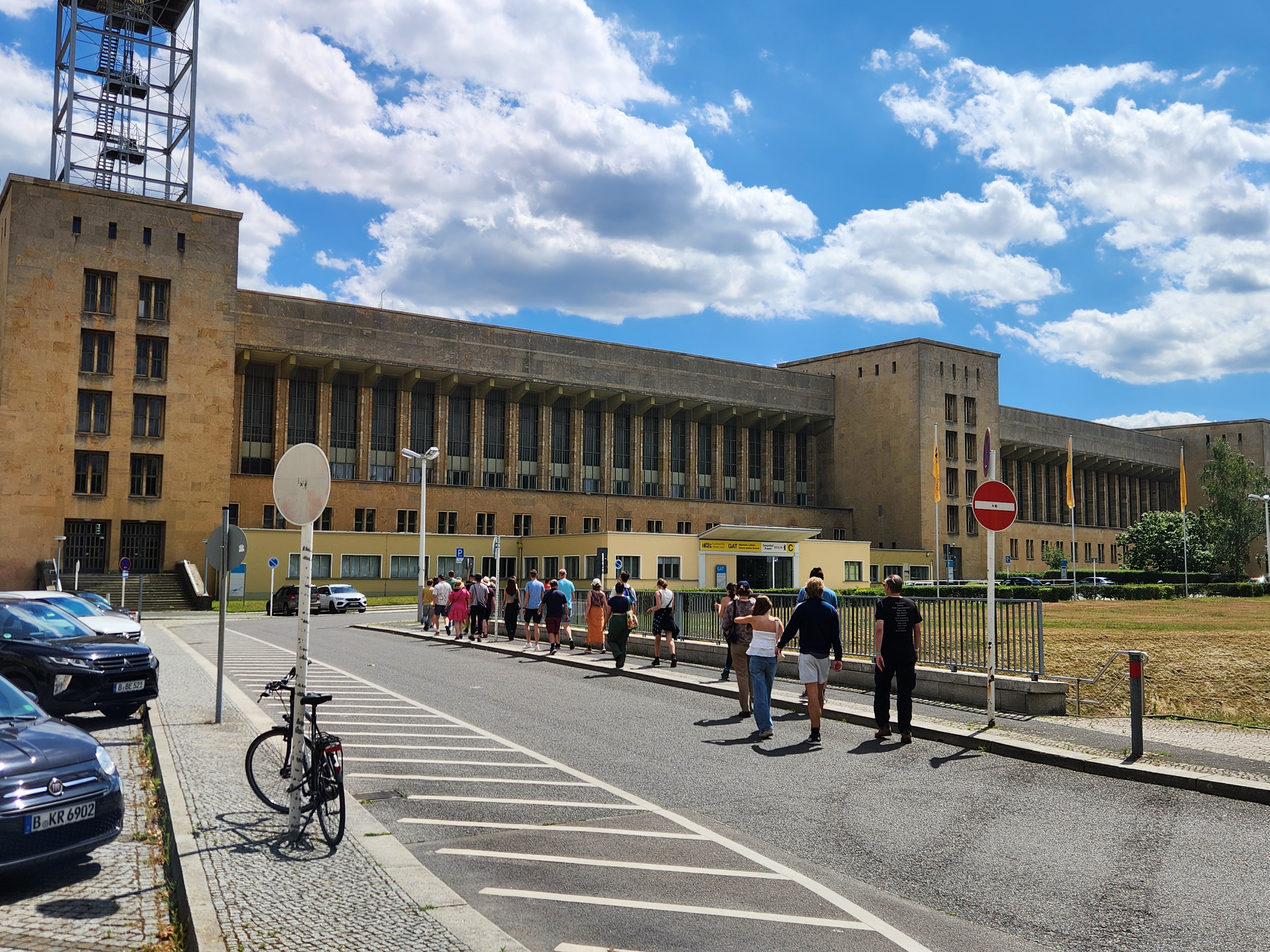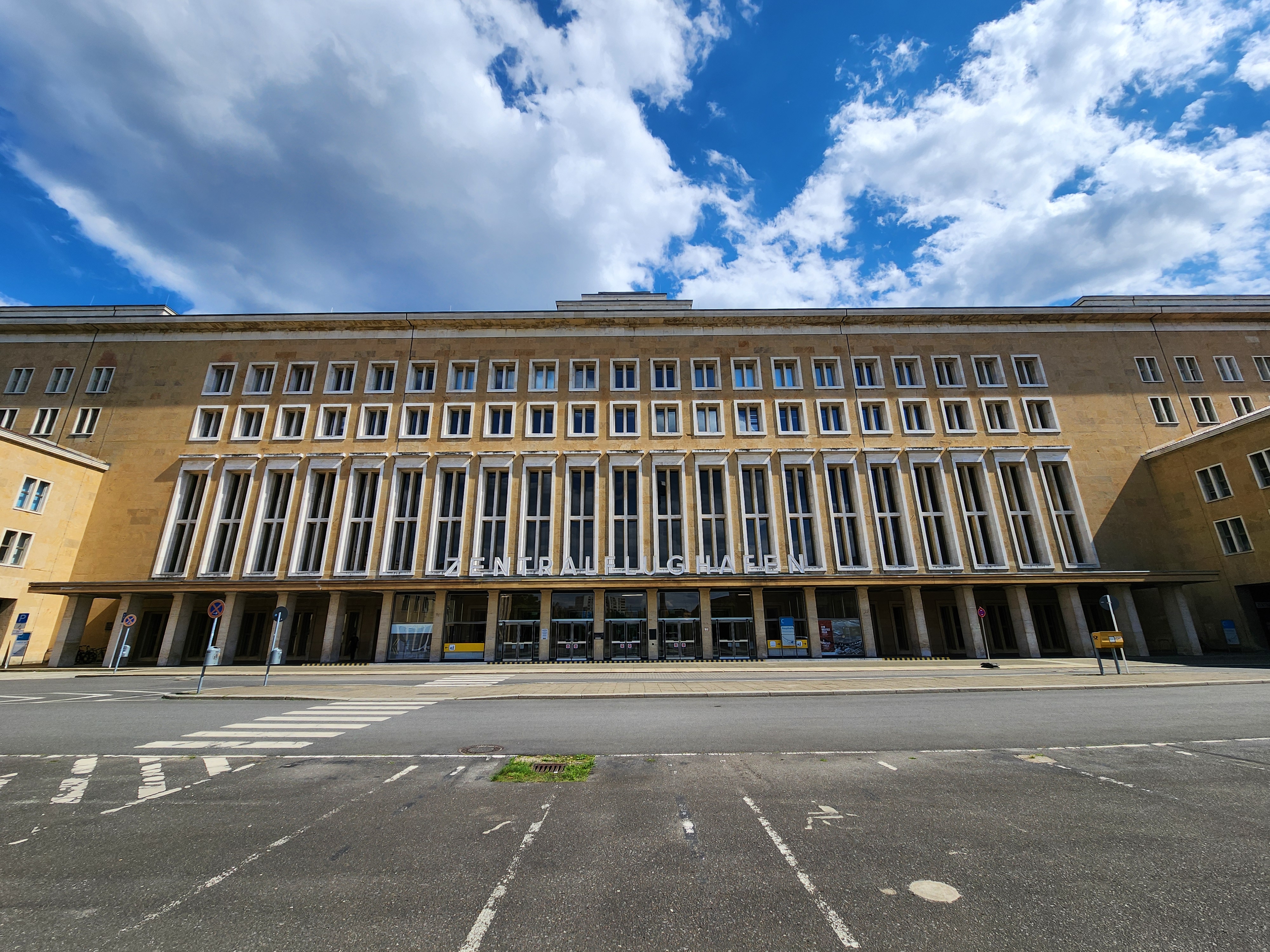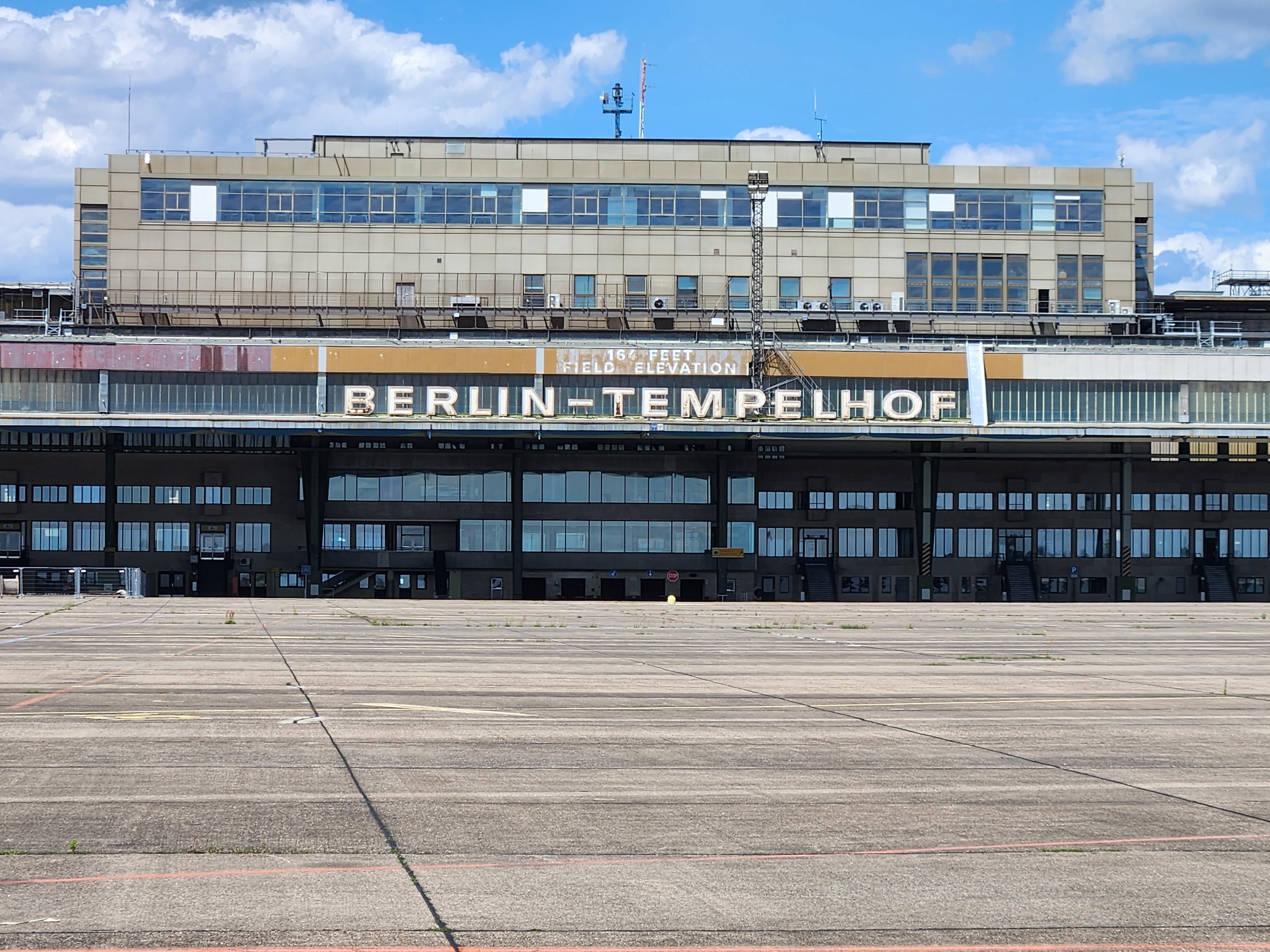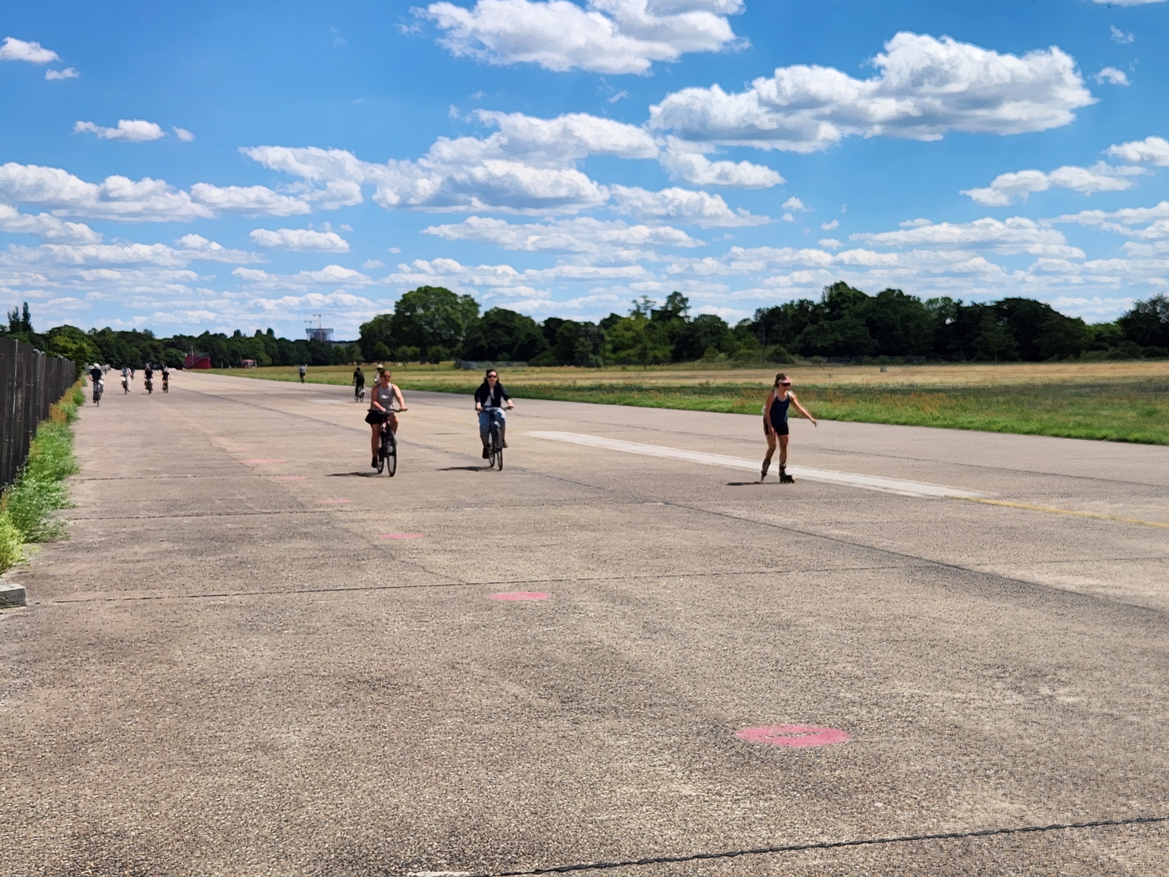 My final day in Germany was mostly spent at Tempelhof Airport. I finally got to visit this iconic location that was witness to the 1936 Olympics, World War II, the Berlin Airlift, and the Cold War. Interestingly, it belonged to the Americans longer than it has been in German control. Construction began around 1932 but after 1945 when WWII ended, it was in West Berlin and in American possession. Most of its life it was an American airbase and commercial airport. From 1990 to 2008, after German reunification, it was a commercial airport but due to its location within the city the runways couldn’t be extended for the larger modern planes. After 2008, it was closed. Though still one of the largest buildings in Europe, it now sits empty. The grounds and runways have been dedicated as a public space for all types of outdoor activities and artistic and cultural enterprises. There are plans to redo part of the building for exhibitions and a historical center with a concert hall and event spaces for rent, but the work is ongoing. For now, the structure is as it was when the doors closed in 2008.