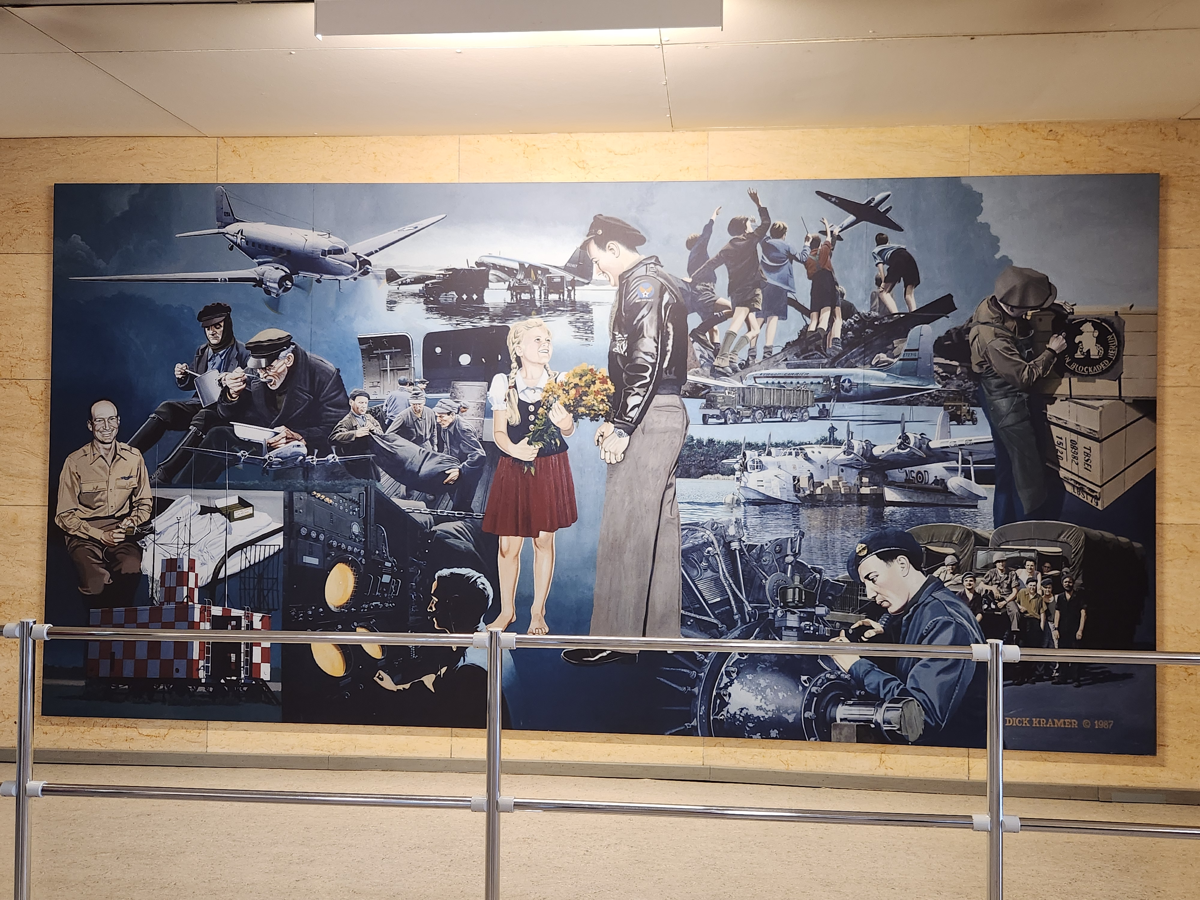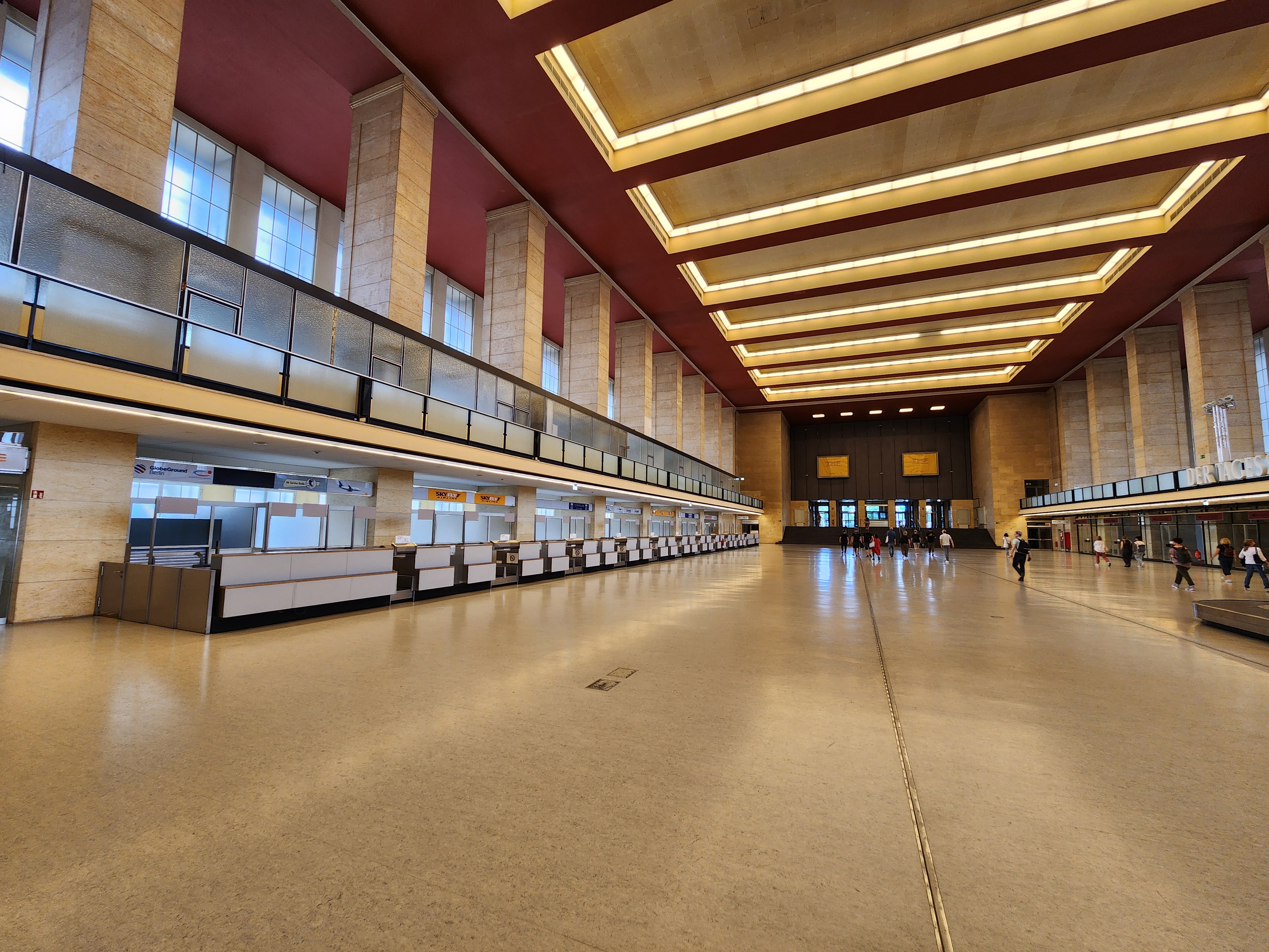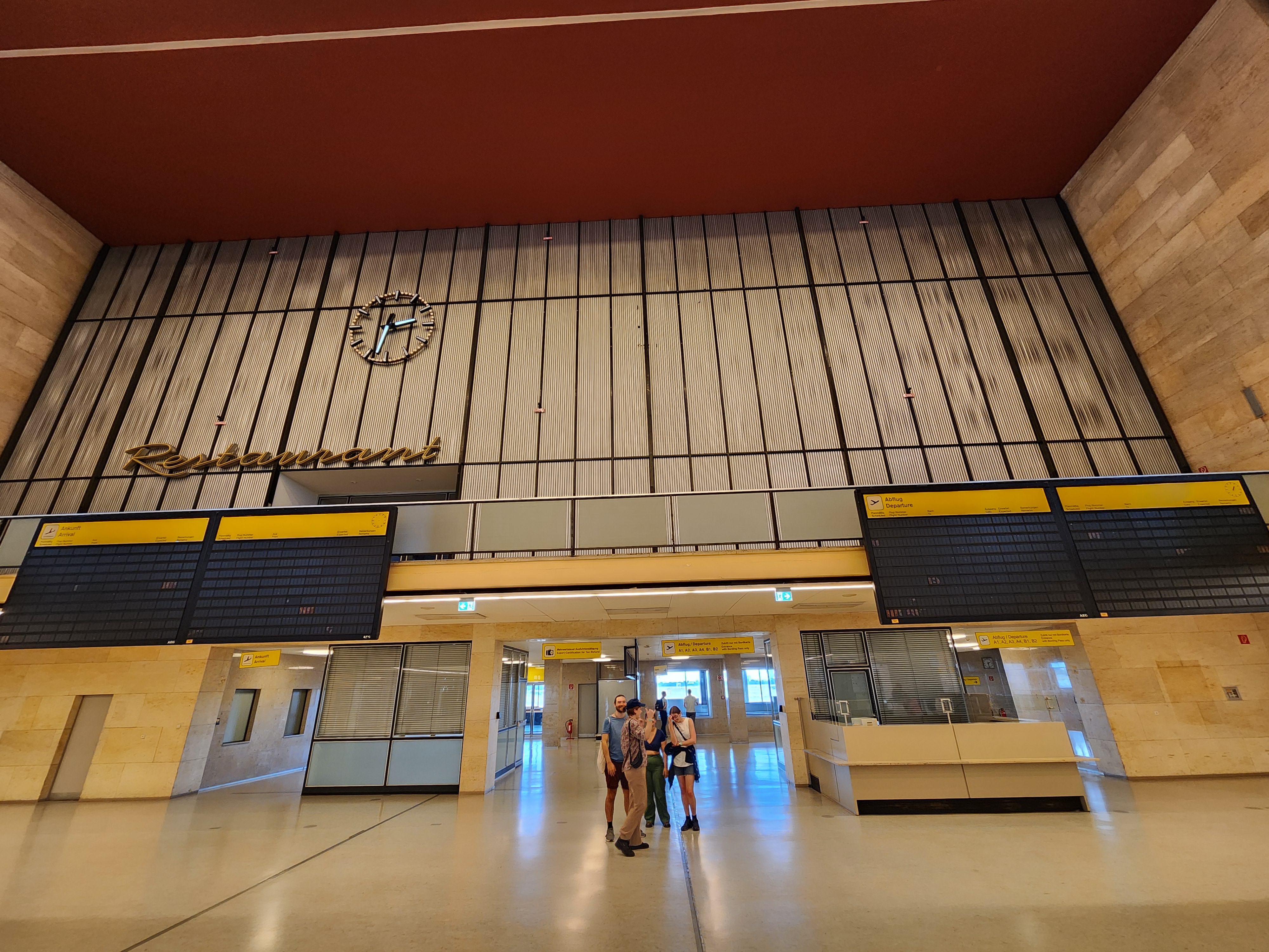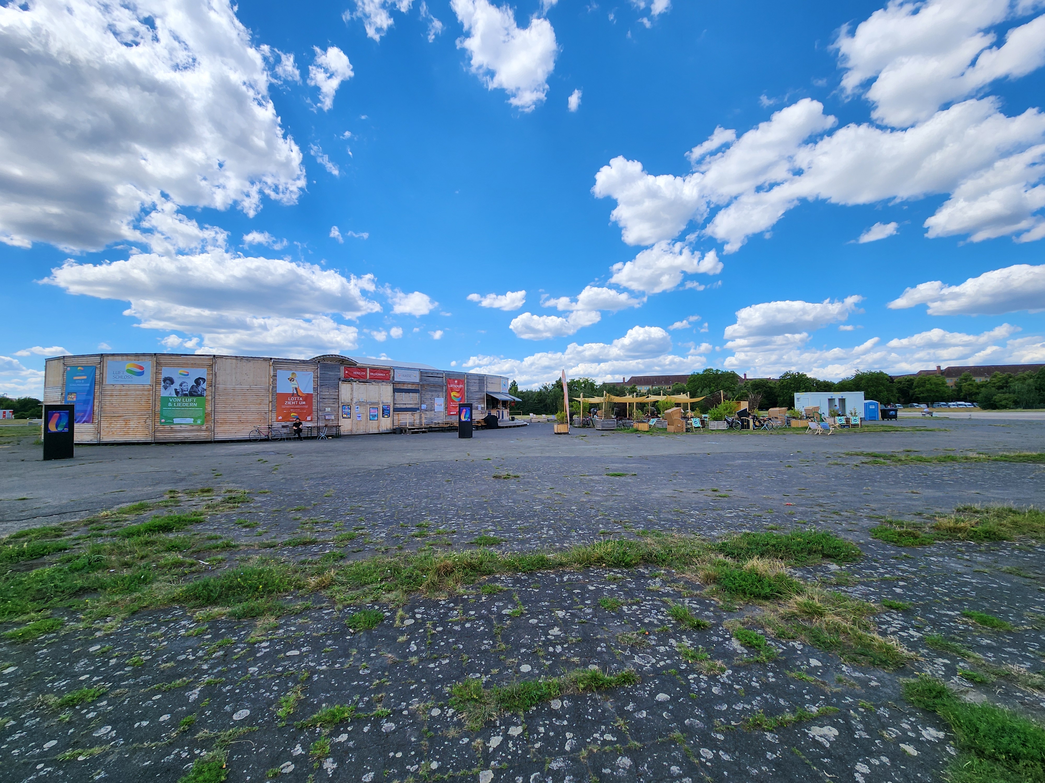 My final day in Germany was mostly spent at Tempelhof Airport. I finally got to visit this iconic location that was witness to the 1936 Olympics, World War II, the Berlin Airlift, and the Cold War. Interestingly, it belonged to the Americans longer than it has been in German control. Construction began around 1932 but after 1945 when WWII ended, it was in West Berlin and in American possession. Most of its life it was an American airbase and commercial airport. From 1990 to 2008, after German reunification, it was a commercial airport but due to its location within the city the runways couldn’t be extended for the larger modern planes. After 2008, it was closed. Though still one of the largest buildings in Europe, it now sits empty. The grounds and runways have been dedicated as a public space for all types of outdoor activities and artistic and cultural enterprises. There are plans to redo part of the building for exhibitions and a historical center with a concert hall and event spaces for rent, but the work is ongoing. For now, the structure is as it was when the doors closed in 2008.