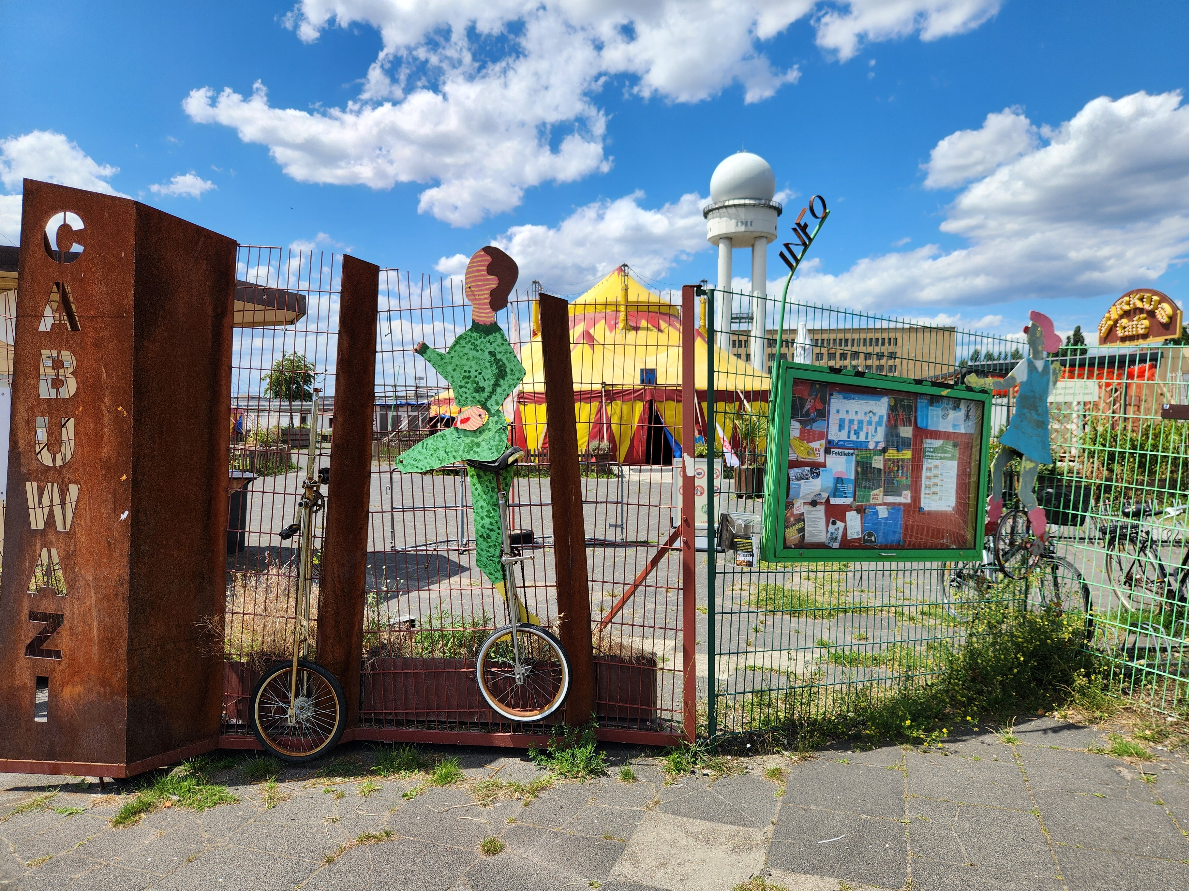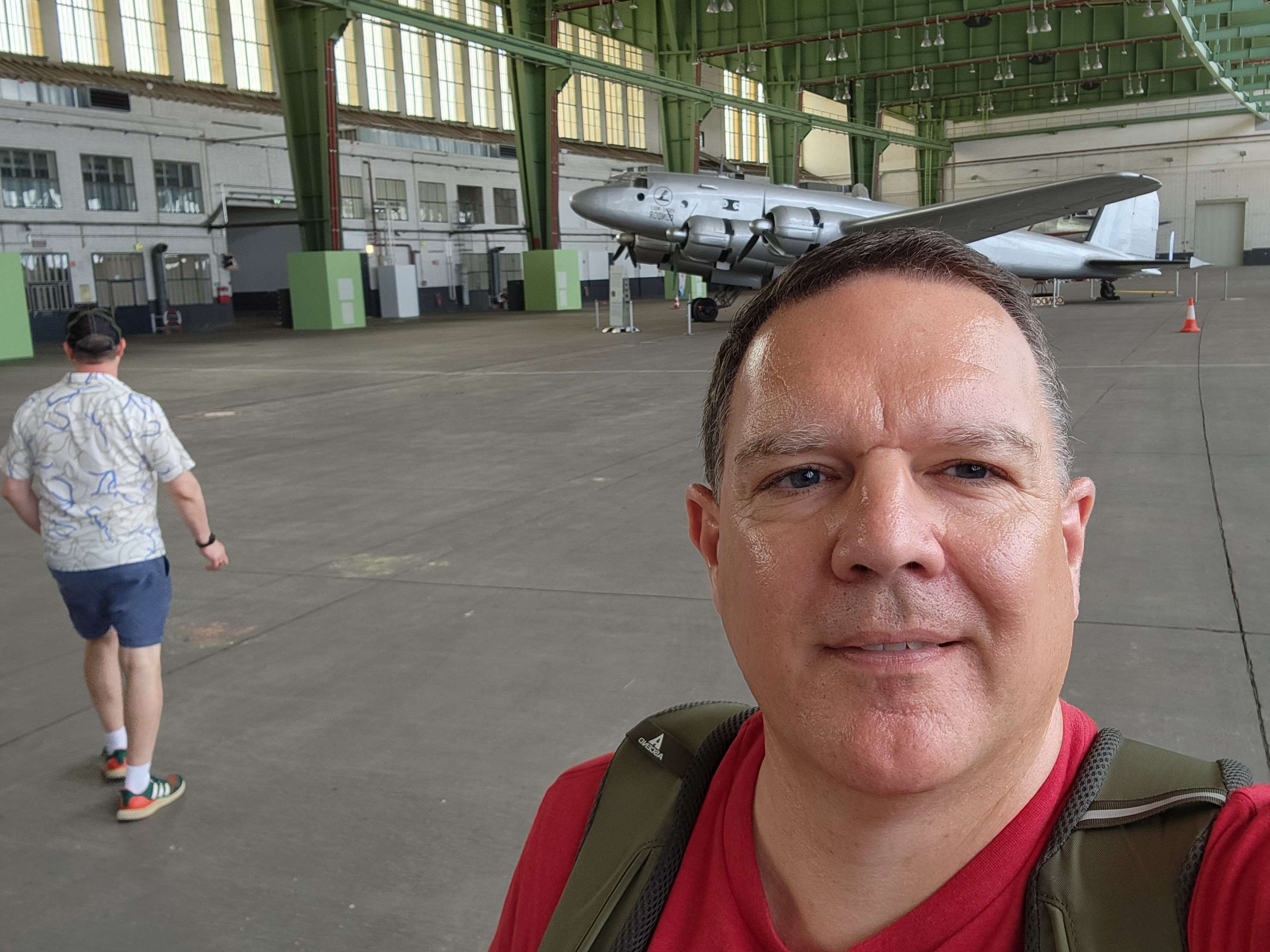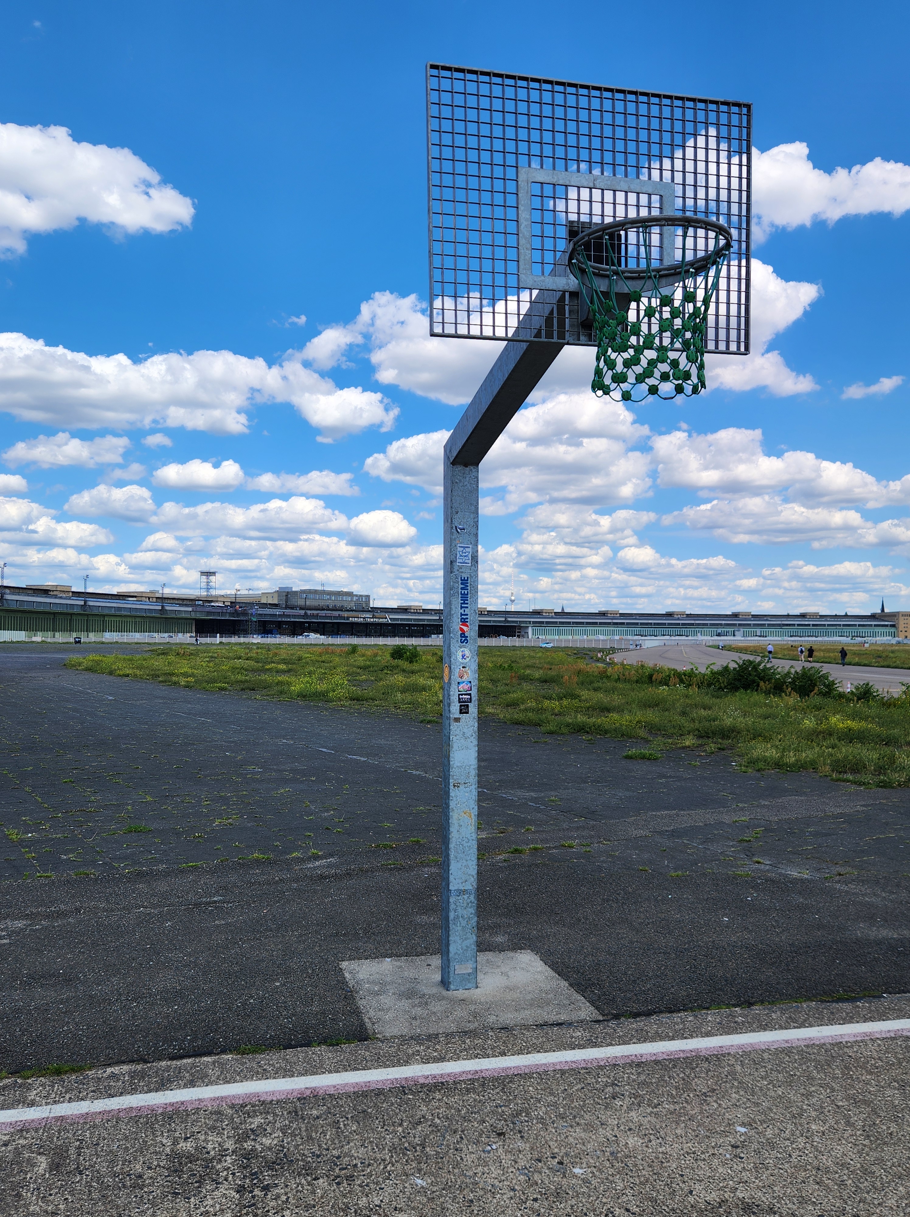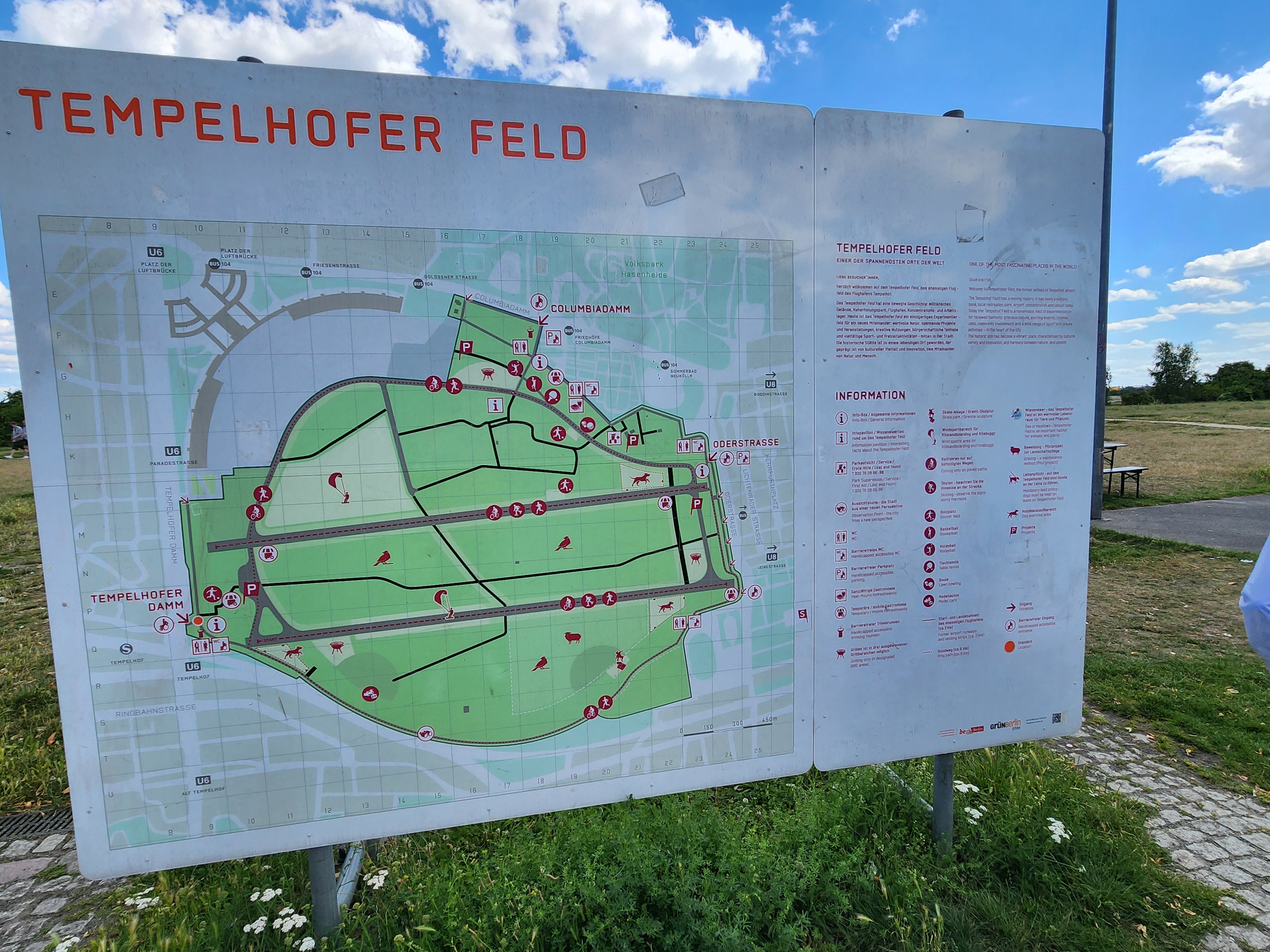 My final day in Germany was mostly spent at Tempelhof Airport. I finally got to visit this iconic location that was witness to the 1936 Olympics, World War II, the Berlin Airlift, and the Cold War. Interestingly, it belonged to the Americans longer than it has been in German control. Construction began around 1932 but after 1945 when WWII ended, it was in West Berlin and in American possession. Most of its life it was an American airbase and commercial airport. From 1990 to 2008, after German reunification, it was a commercial airport but due to its location within the city the runways couldn’t be extended for the larger modern planes. After 2008, it was closed. Though still one of the largest buildings in Europe, it now sits empty. The grounds and runways have been dedicated as a public space for all types of outdoor activities and artistic and cultural enterprises. There are plans to redo part of the building for exhibitions and a historical center with a concert hall and event spaces for rent, but the work is ongoing. For now, the structure is as it was when the doors closed in 2008.